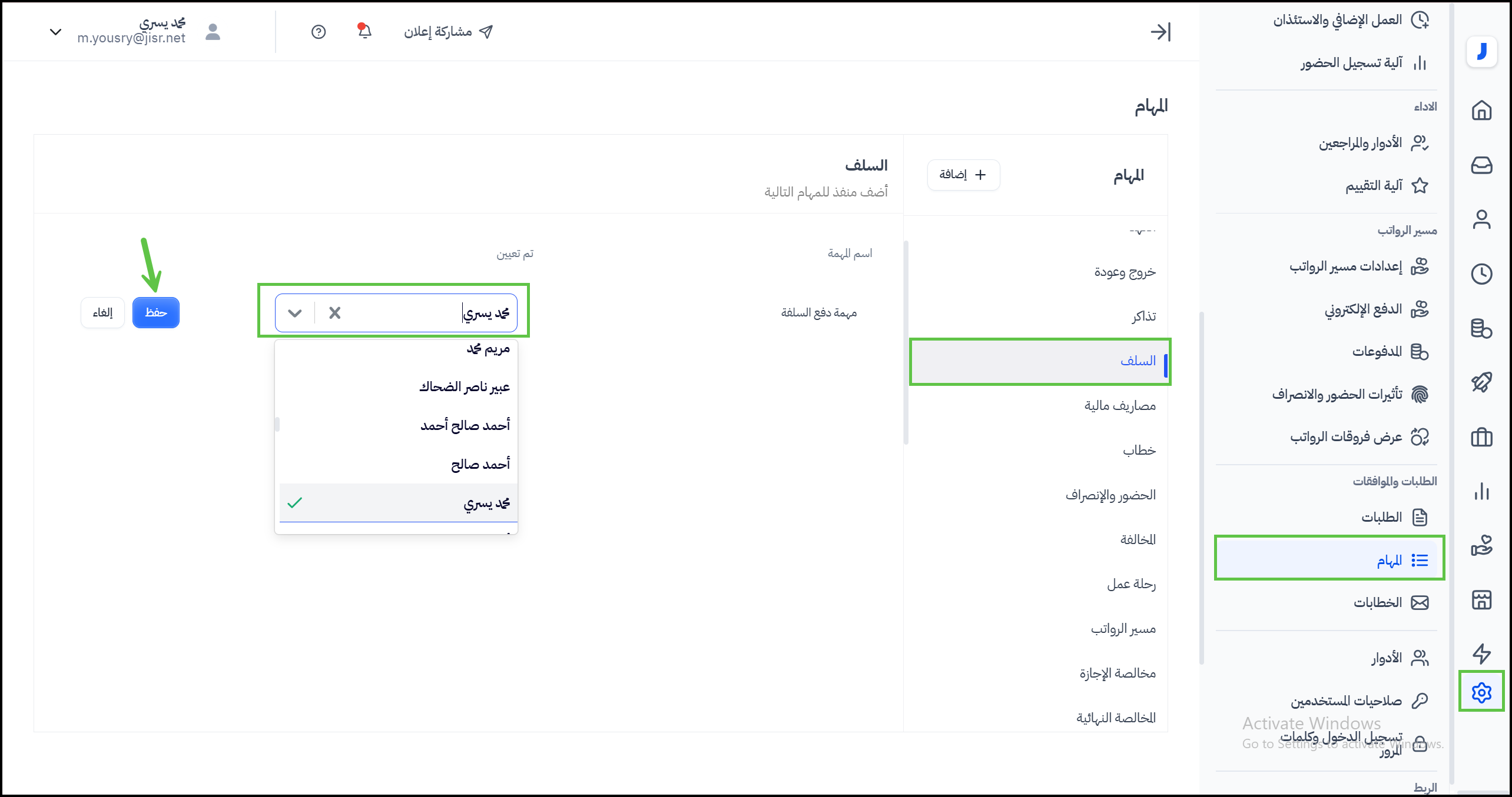 كيفية تفعيل وإسناد مهمة دفع السلفة