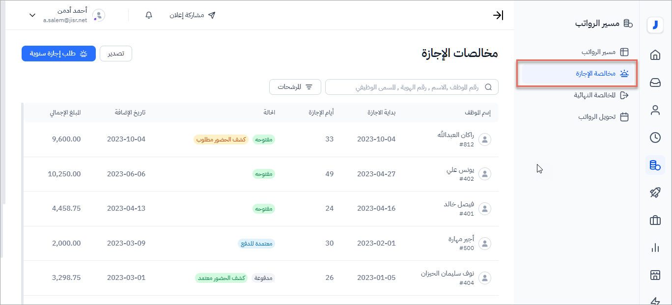 كيف يساعد جسر في عملية احتساب مخالصة الإجازة السنوية :