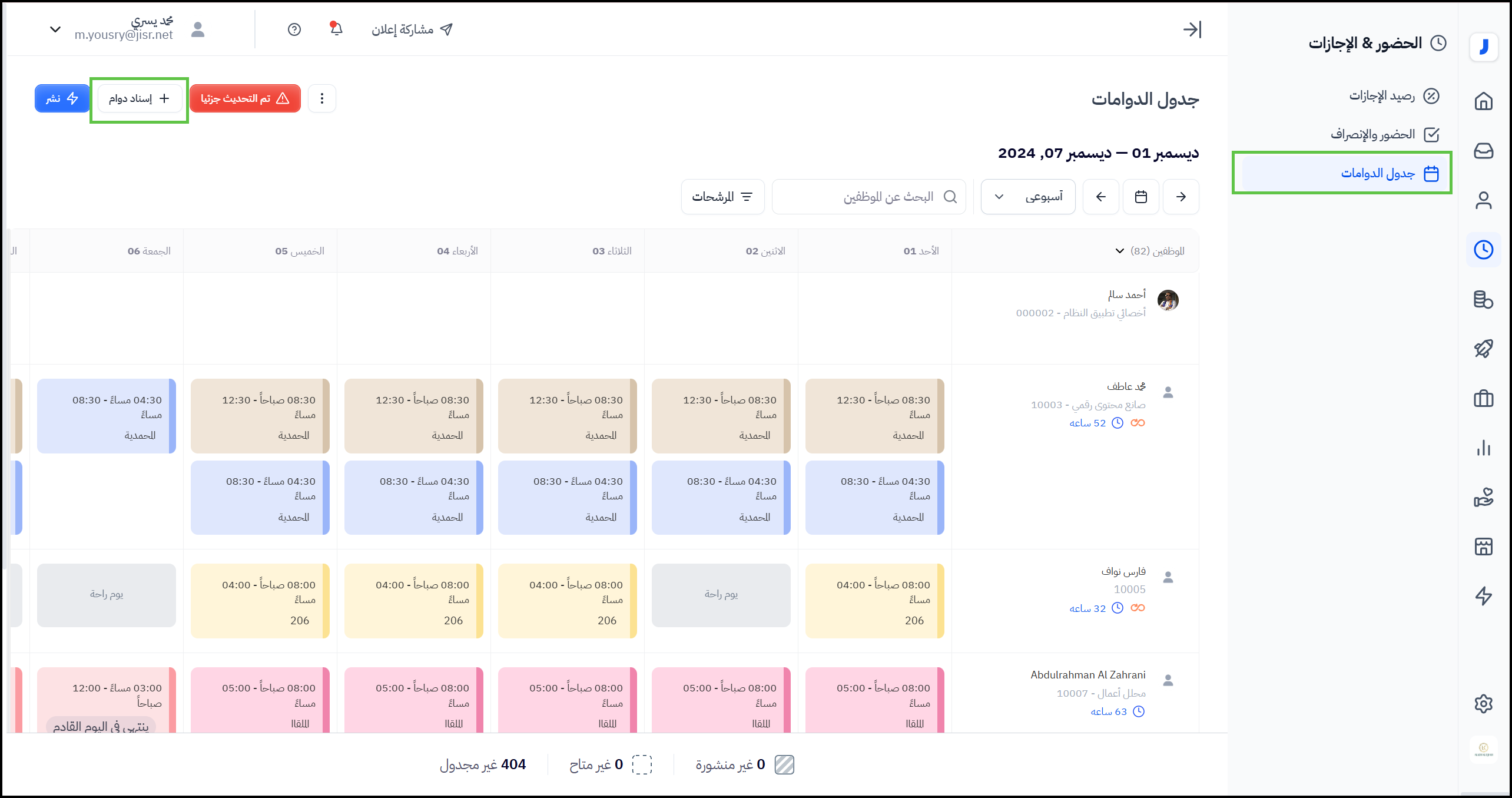 - النقر على "إسناد دوام"