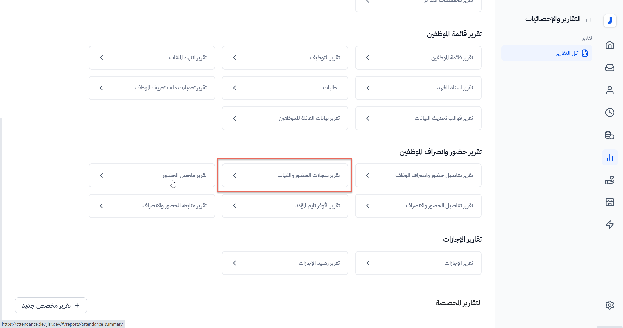 - قم باختيار تقرير سجلات الحضور والغياب.