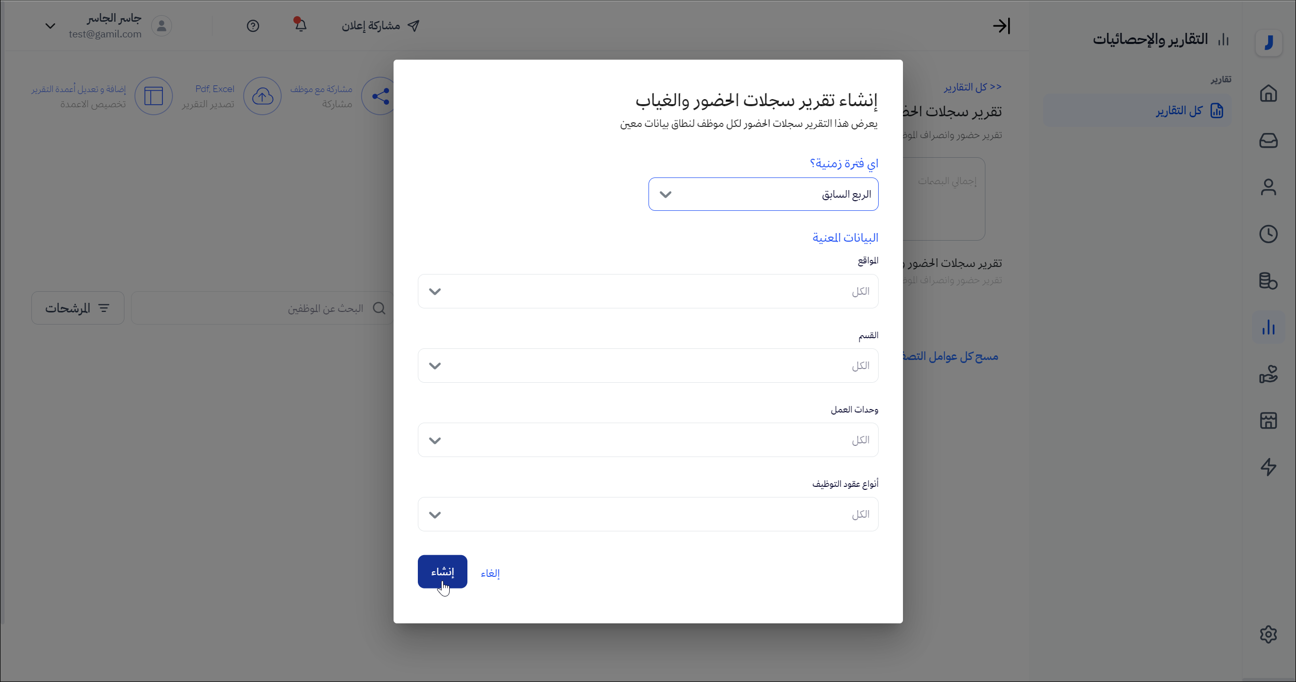 انتقل للقسم تقرير حضور وانصراف الموظفين.