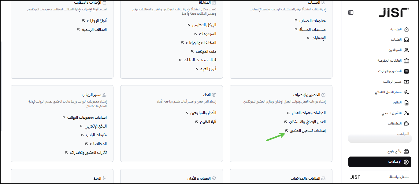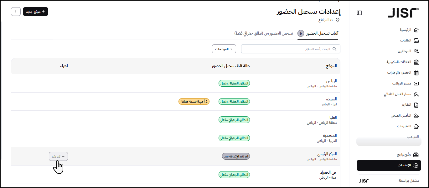 3- داخل تبويب "آليات تسجيل الحضور" يمكن للمستخدم النقر على "تعريف".