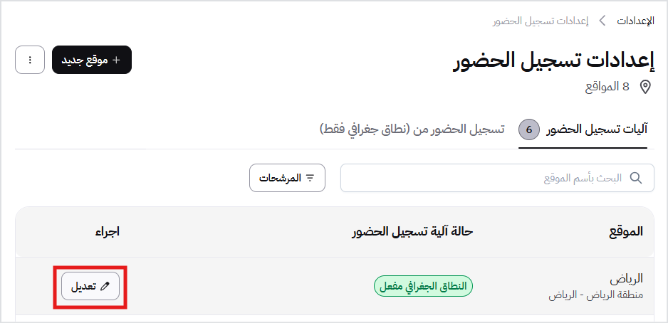 1- اضغط على زر "تعديل" أمام الموقع المطلوب