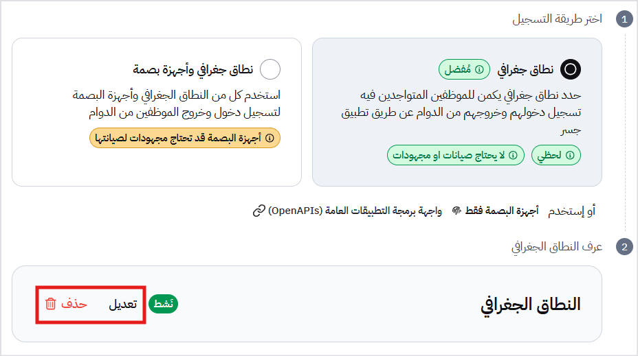 من خلال تفعيل هذه الخاصية على النظام يمكن للموظفين تسجيل وإثبات بصمات الحضور والانصراف من خلال تطبيق الخدمة الذاتية للجوال وفي مواقع عملهم التي تم تفعيلها عن طريق الأدمن.