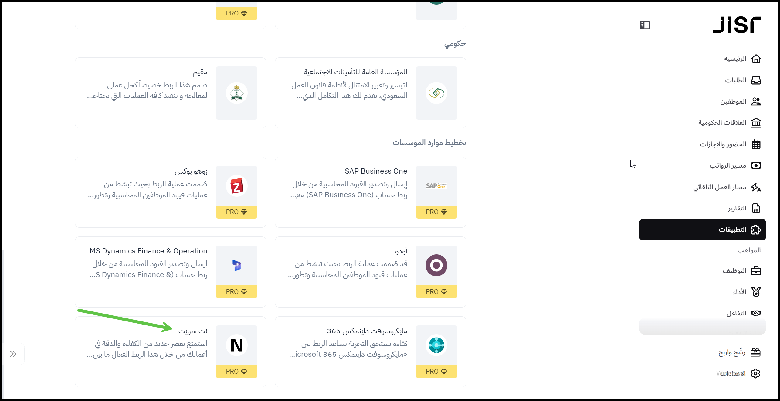 في القسم التطبيقات قم بإختيار نت سويت