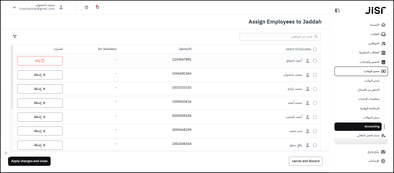 ملحوظة: يوفر نظام جسر للمستخدم إمكانية توزيع تكاليف الموظفين على مراكز التكلفة ويمكن للمستخدم معرفة المزيد من التفاصيل حول هذه الميزة من هنا.