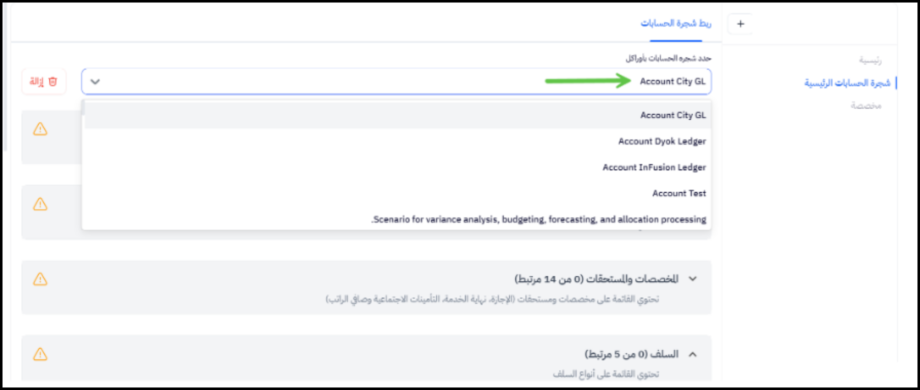 يمكن للمسؤول إجراء عملية الربط على مستوى الشركة الفرعية أو مركز التكلفة أيضاً.
