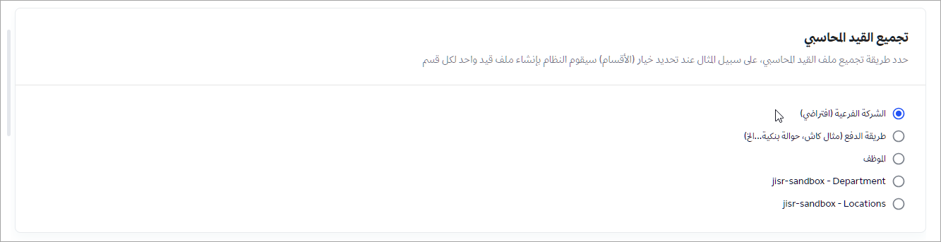 بالإضافة إلى أن هذا الخيار يساعد في تحديد طريقة تجميع ملف القيد المحاسبي، وفصله بناء على الإختيار الذي تم تعيينه.