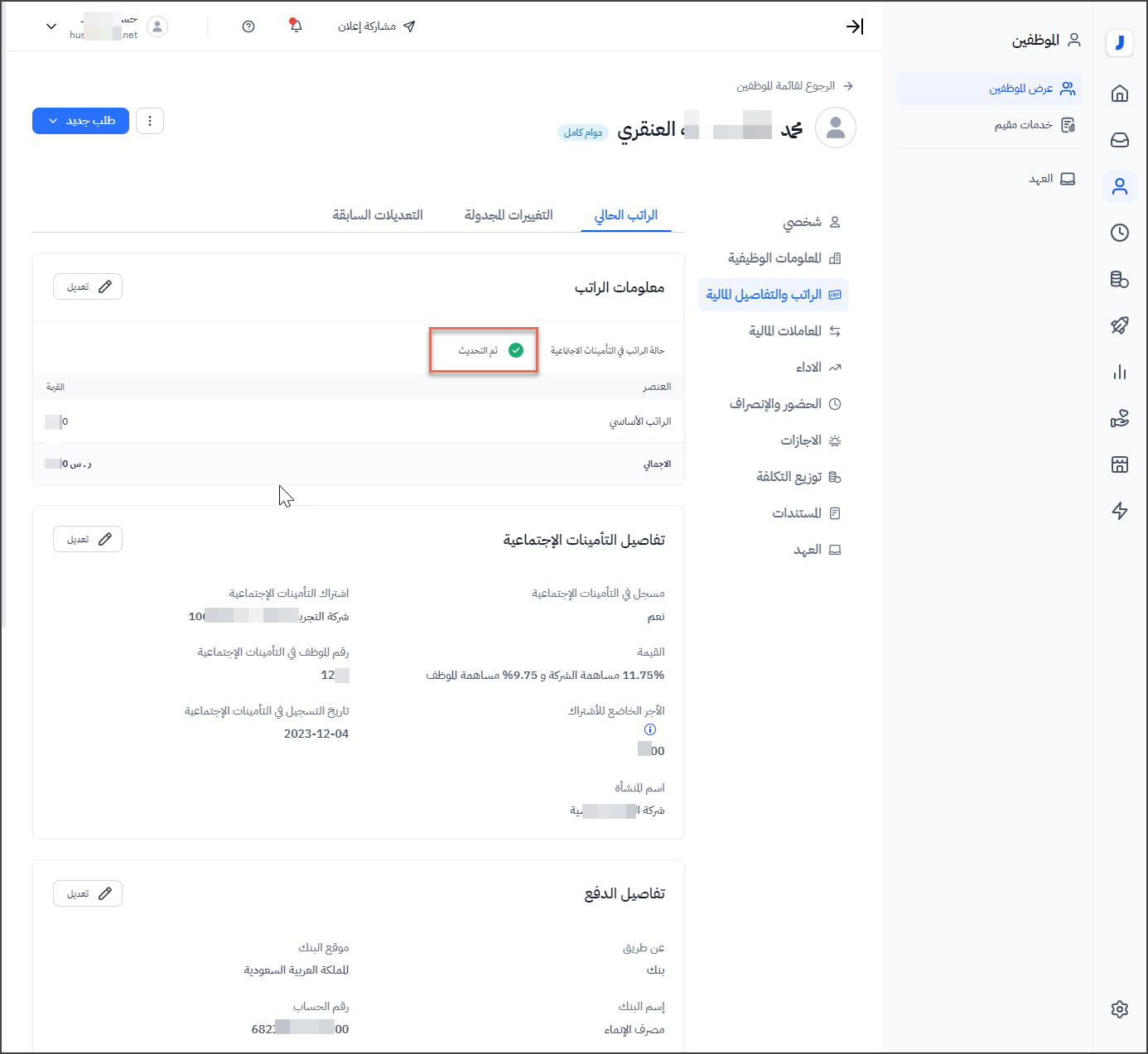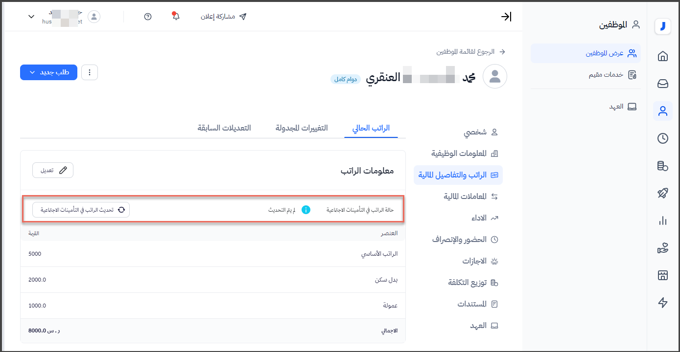 قم بتحديث تفاصيل الراتب الجديد للموظف.