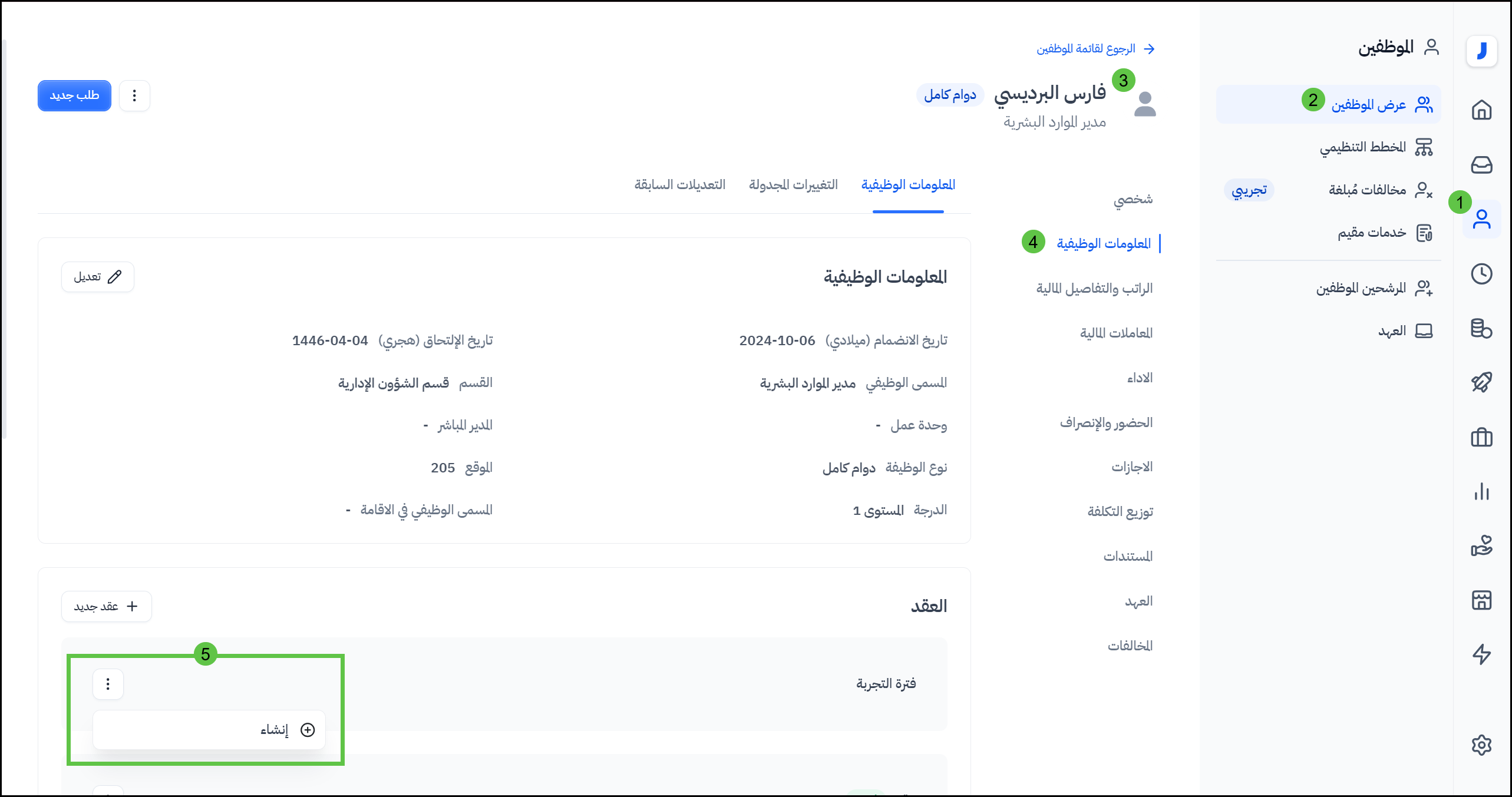 3- قم بالدخول لملف الموظف واختر صفحة المعلومات الوظيفية