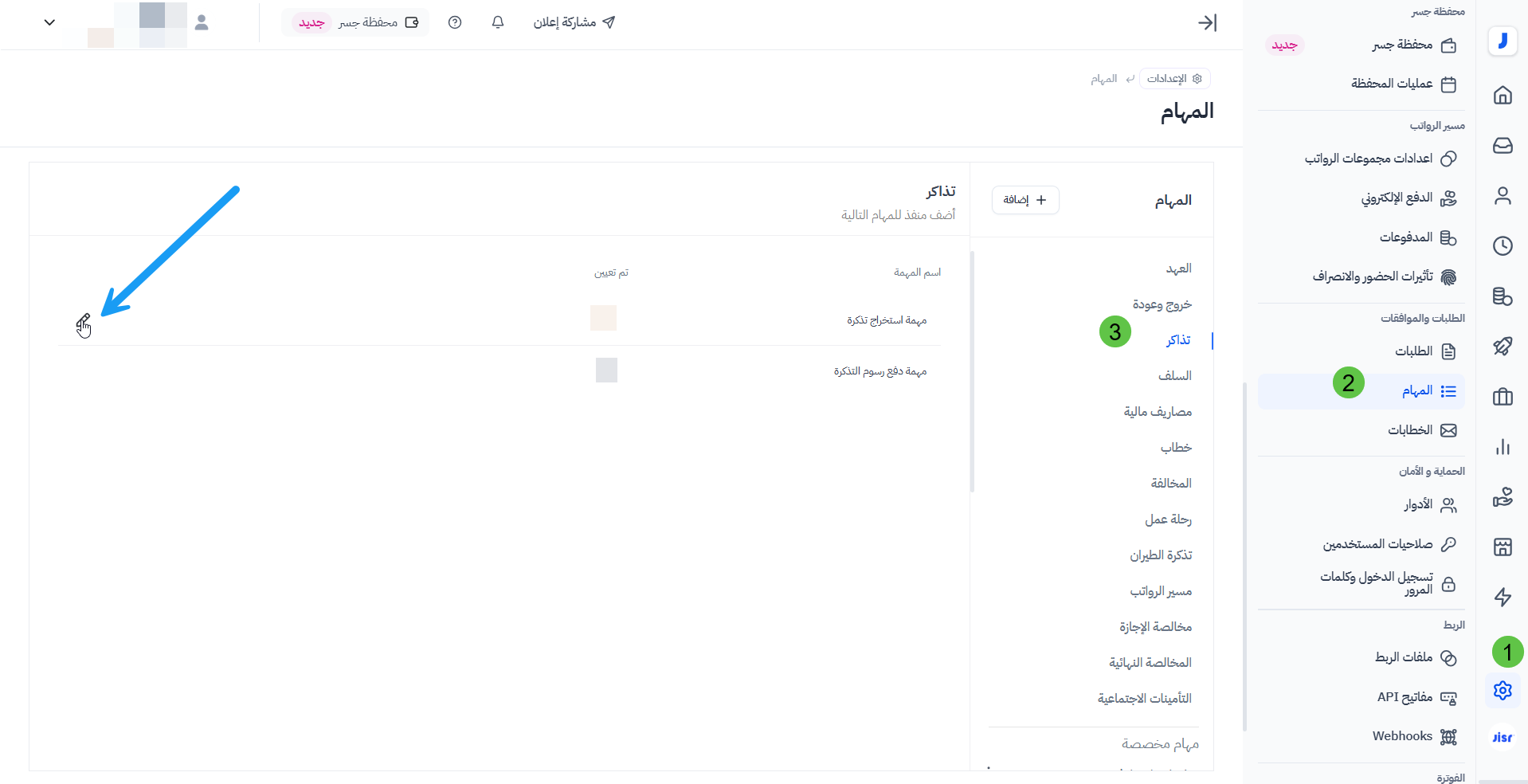 - "مهمة إصدار تذكرة سفر" ( لبدء حجز التذكرة للموظف )