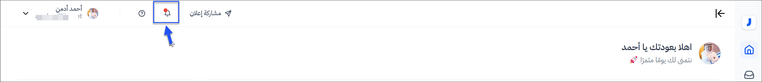 1- قم بالنقر على أيقونة ( الجرس ) الظاهرة في النظام.