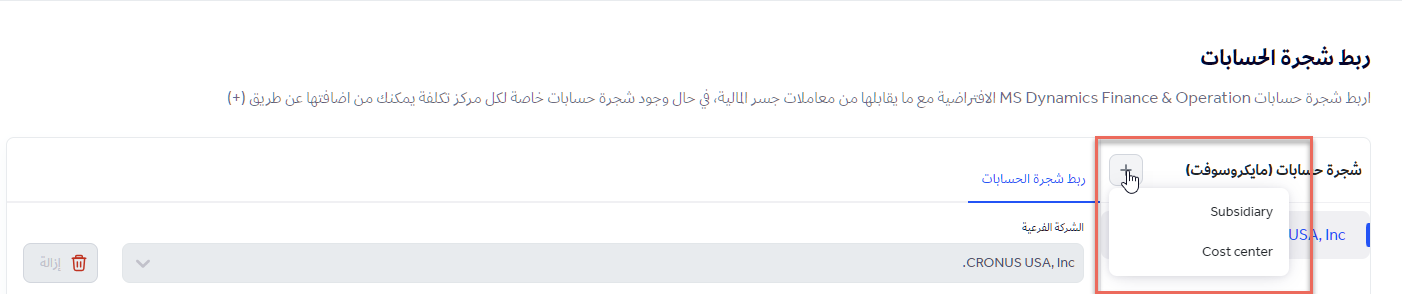 يمكن للمسؤول إجراء عملية الربط على مستوى الشركة الفرعية أو مركز التكلفة أيضاً.