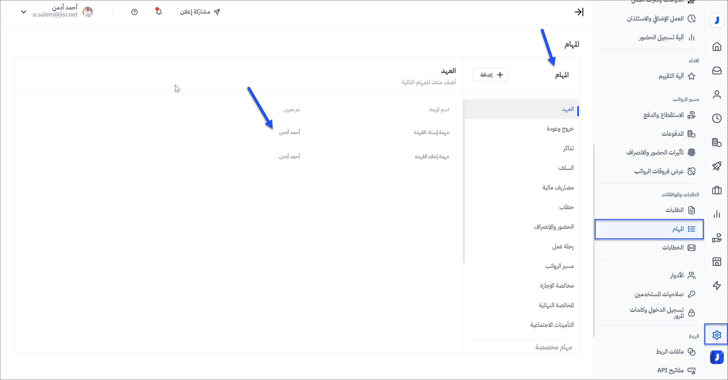 تعيين الشخص المنفذ للمهام المتاحة على النظام: