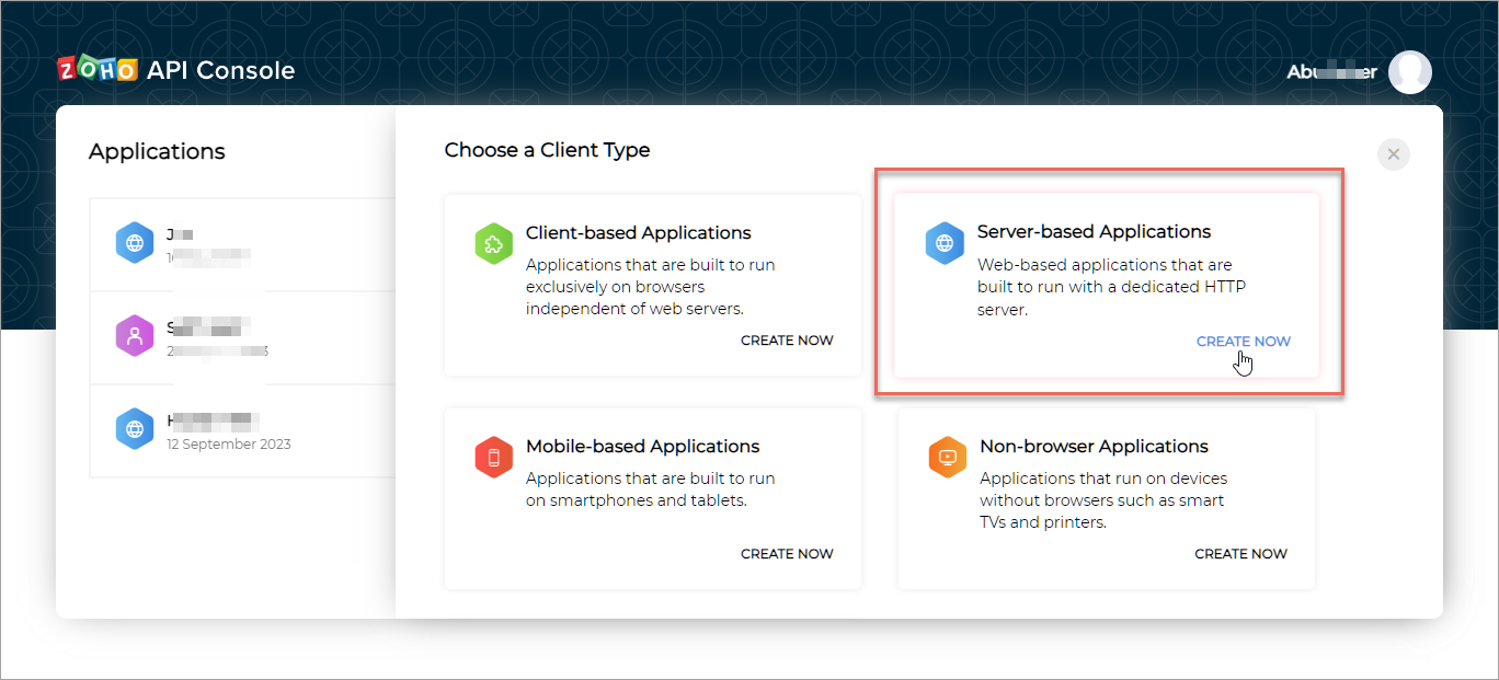4- قم بإختيار Server-based Applications ثم النقر على الخيار Create New