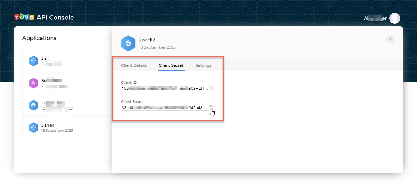 6- قم بنسخ القيم الظاهرة في التبويب Client Secret والإحتفاظ بها في ملف نصي جانبي.