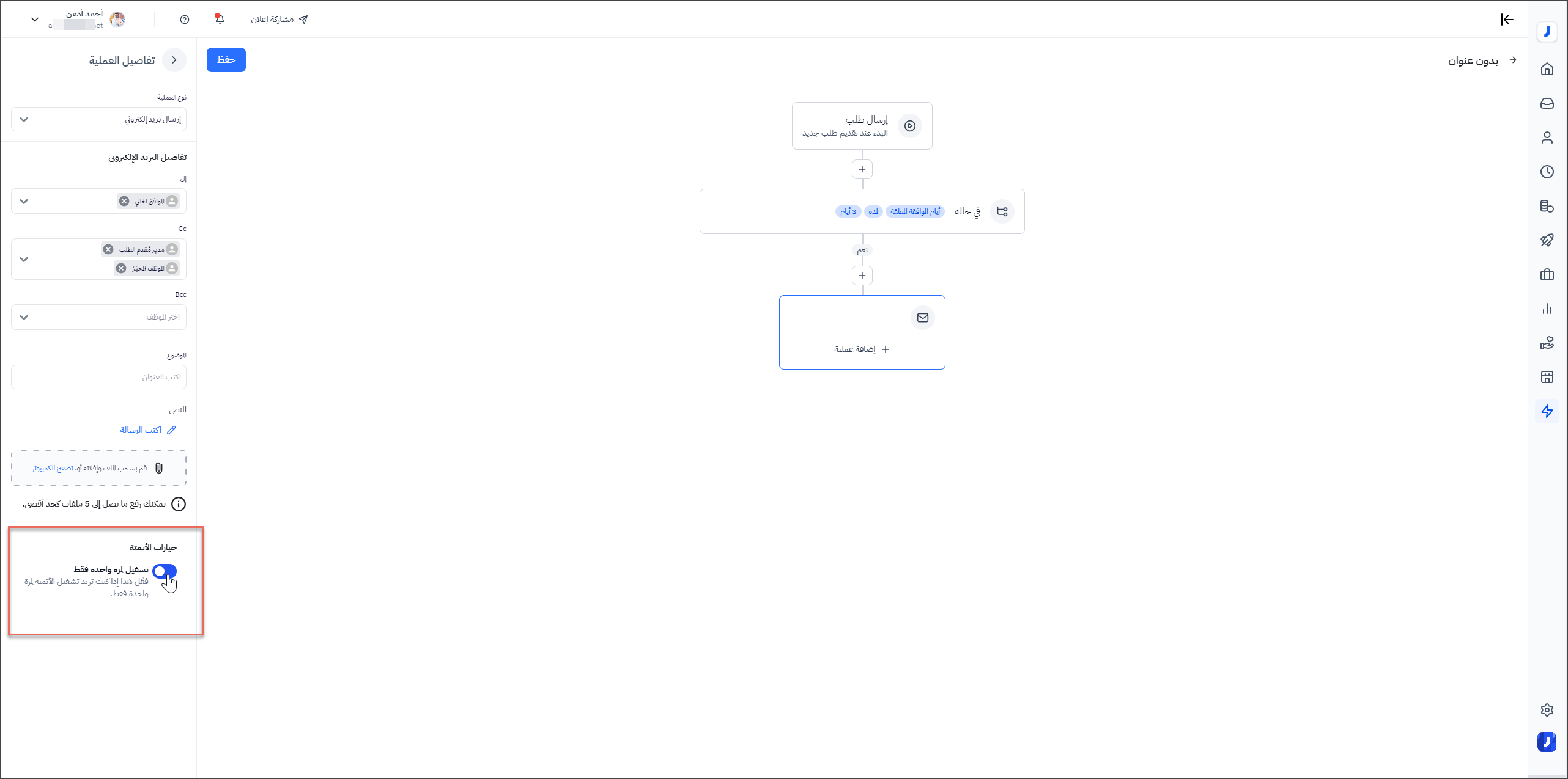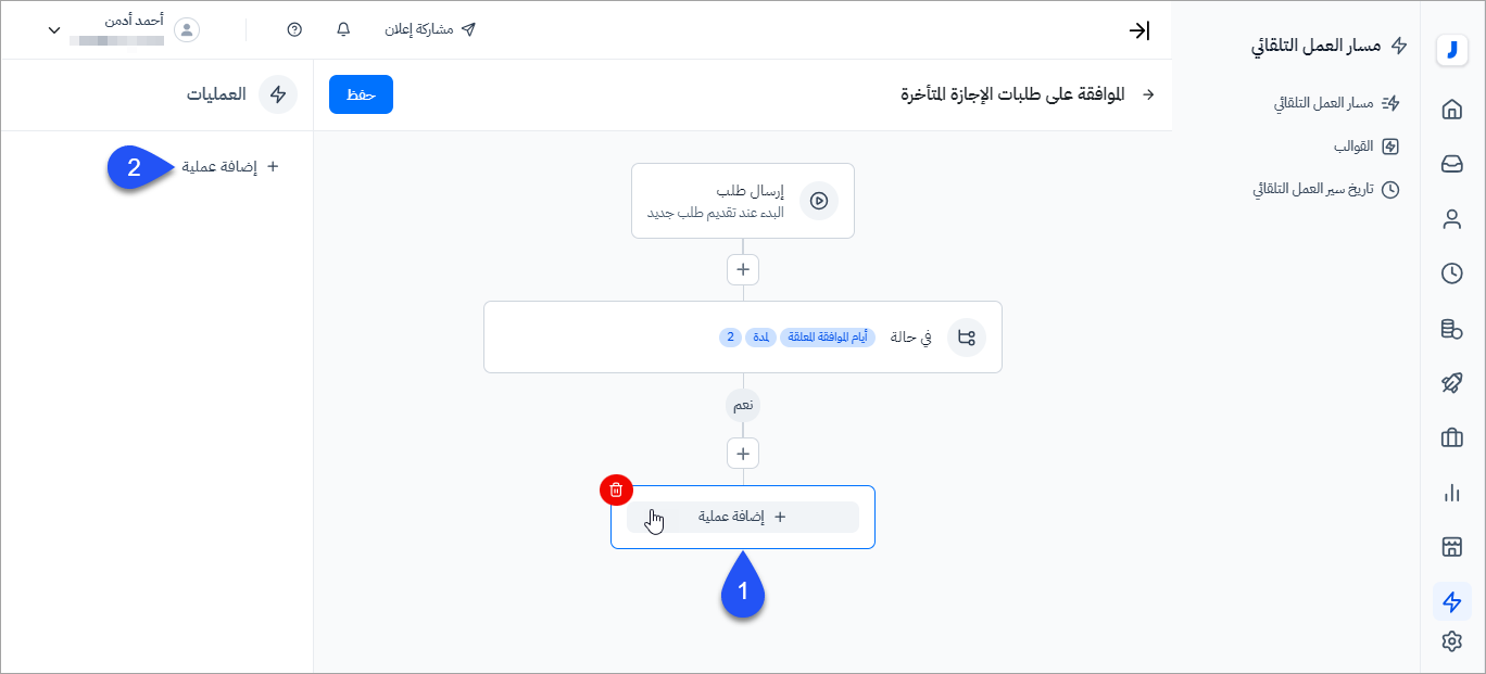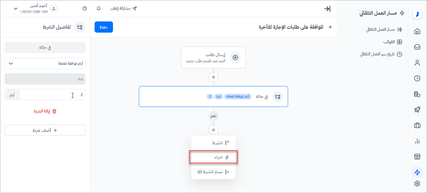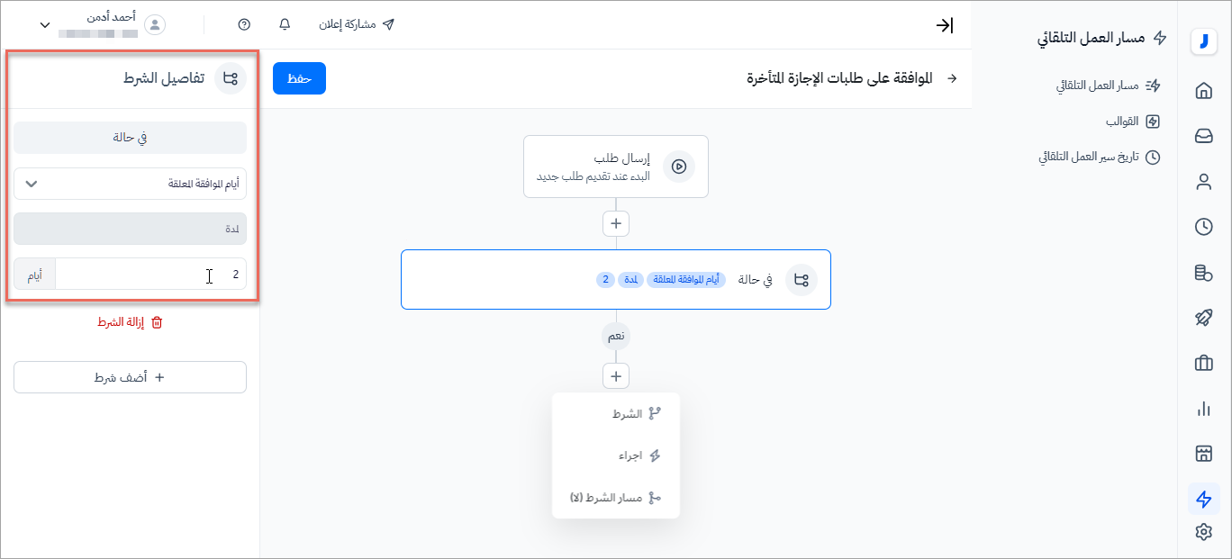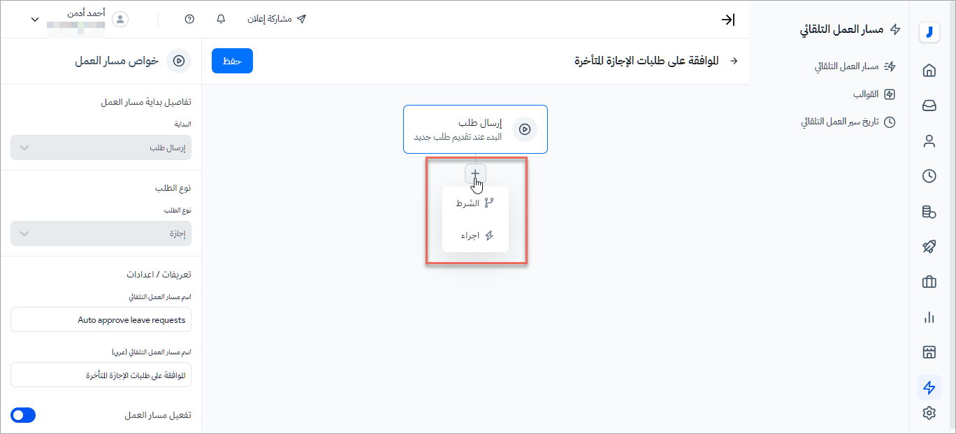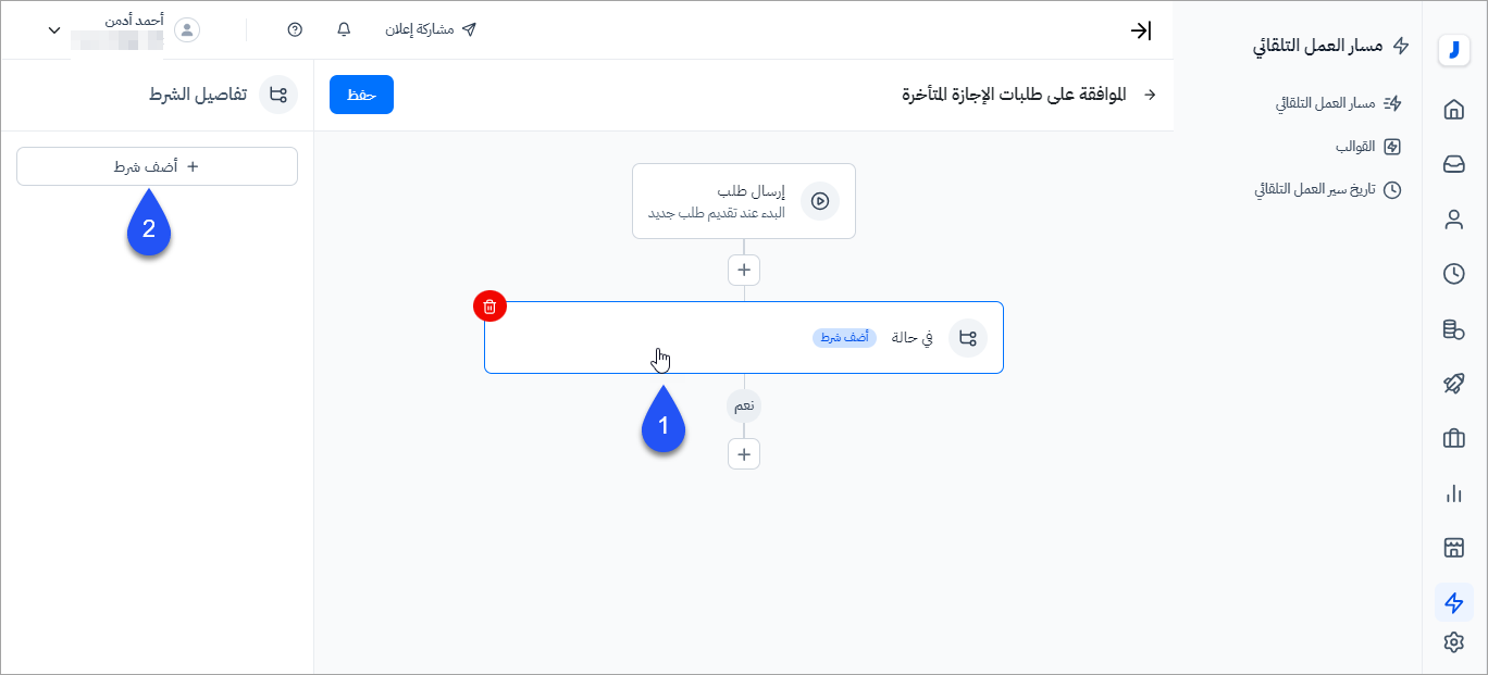 - بإمكان المستخدم من إنشاء أكثر من شرط أو إجراء ضمن مسار العمل التلقائي.