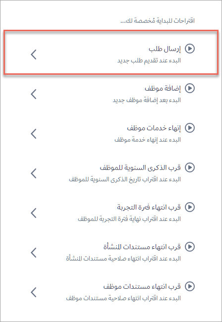 1- قم بإختيار النوع ( إرسال طلب ) من قائمة الإقتراحات المتاحة على النظام