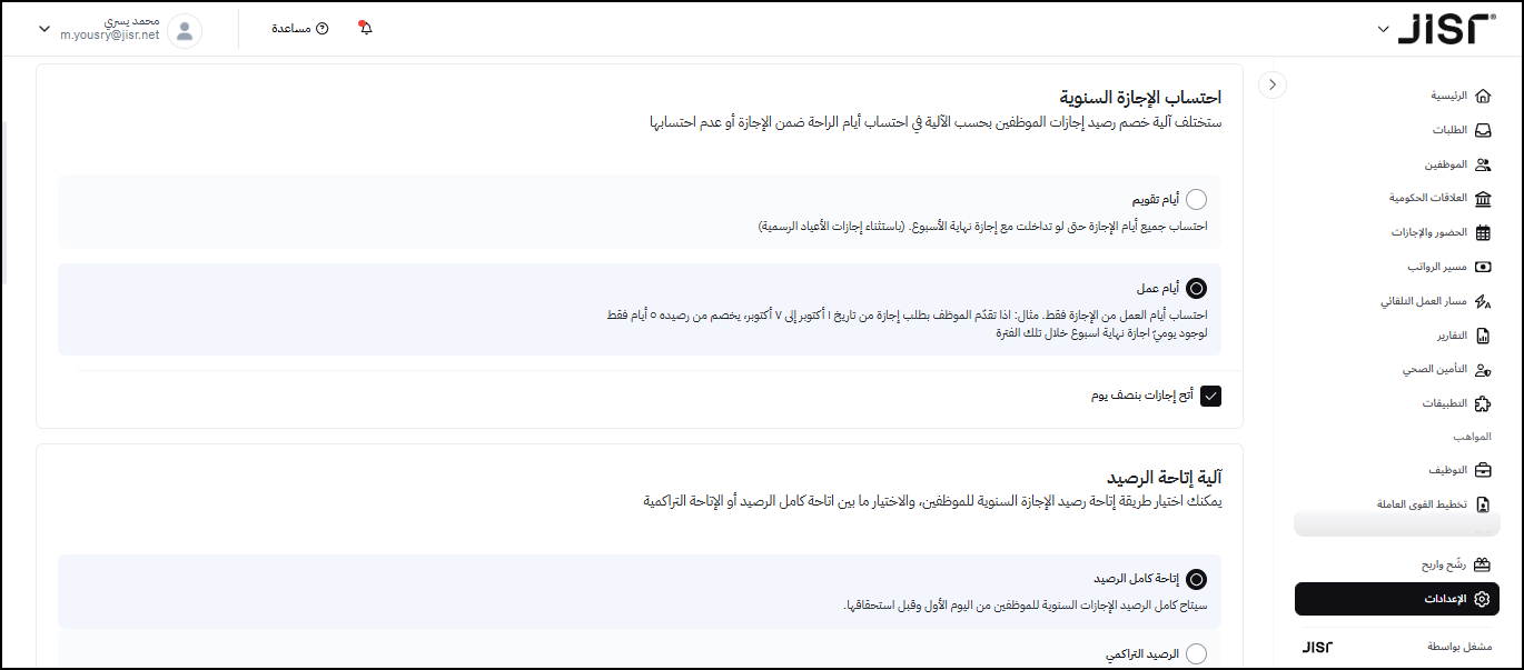 3- قم بتفعيل خيار ( أتح إجازات بنصف اليوم ).