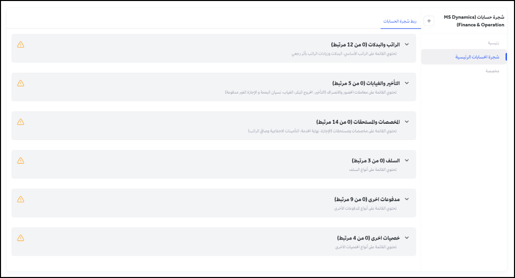 في هذه الخطوة ، يستلزم ربط شجرة حسابات مايكروسوفت الرئيسية ( الإفتراضية ) مع ما يقابلها من معاملات جسر المالية.