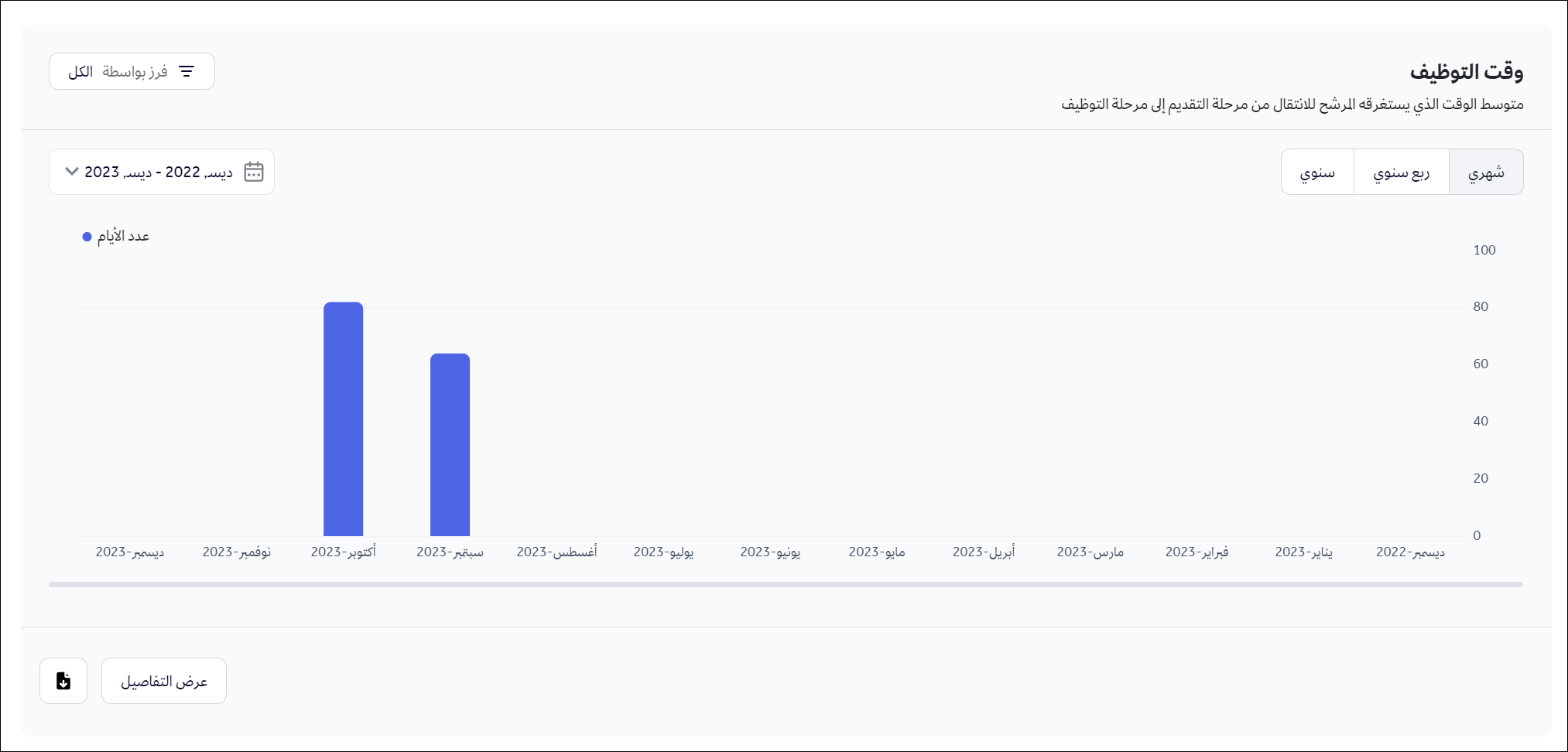 تحليل البيانات المهمة لجميع مراحل التوظيف بشكل عام.