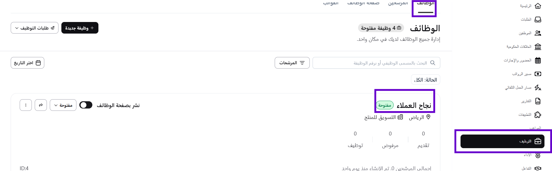 إدارة ونشر الوظائف على نظام جسر لتتبع المتقدمين