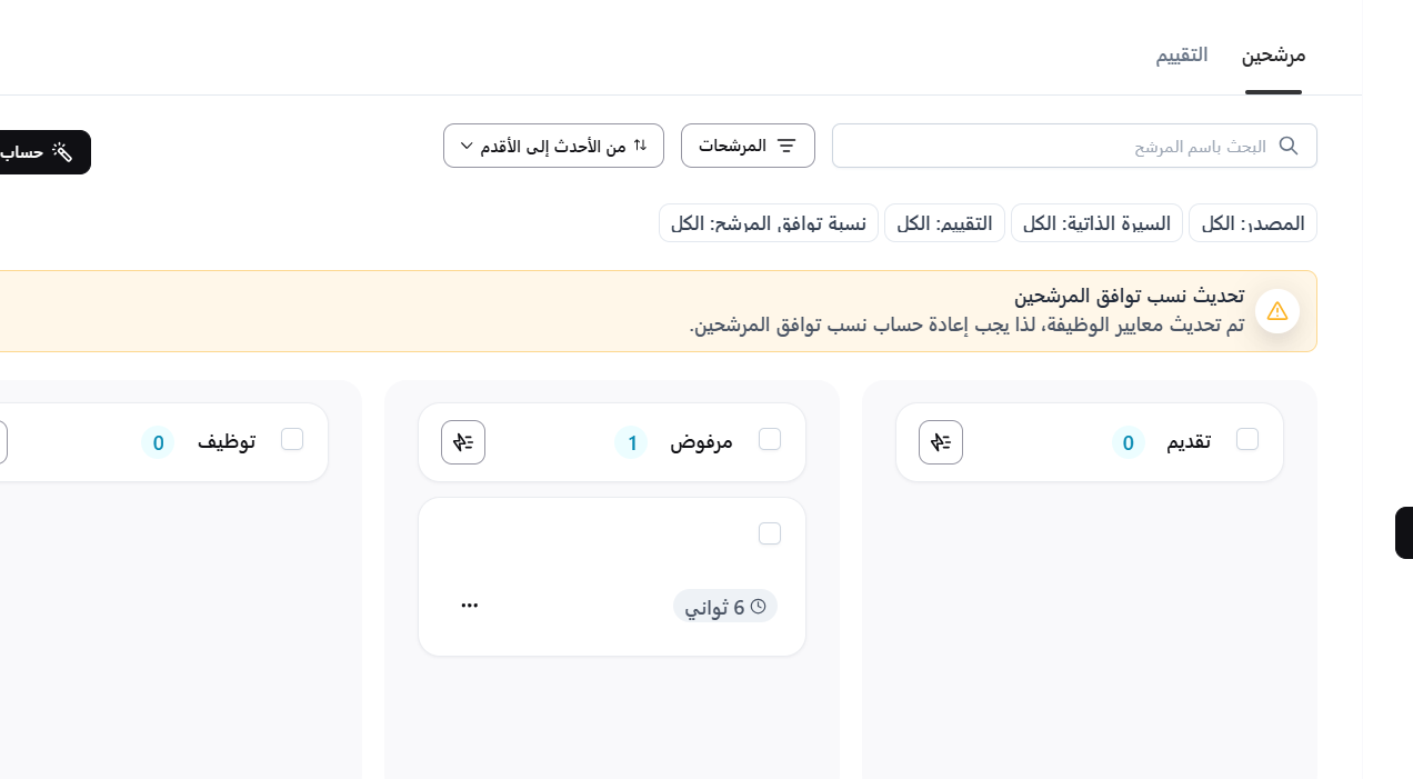 عند فتح صفحة الوظيفة، ستجد المرشحين المرفوضين مُدرجين تحت 'مرفوض'.