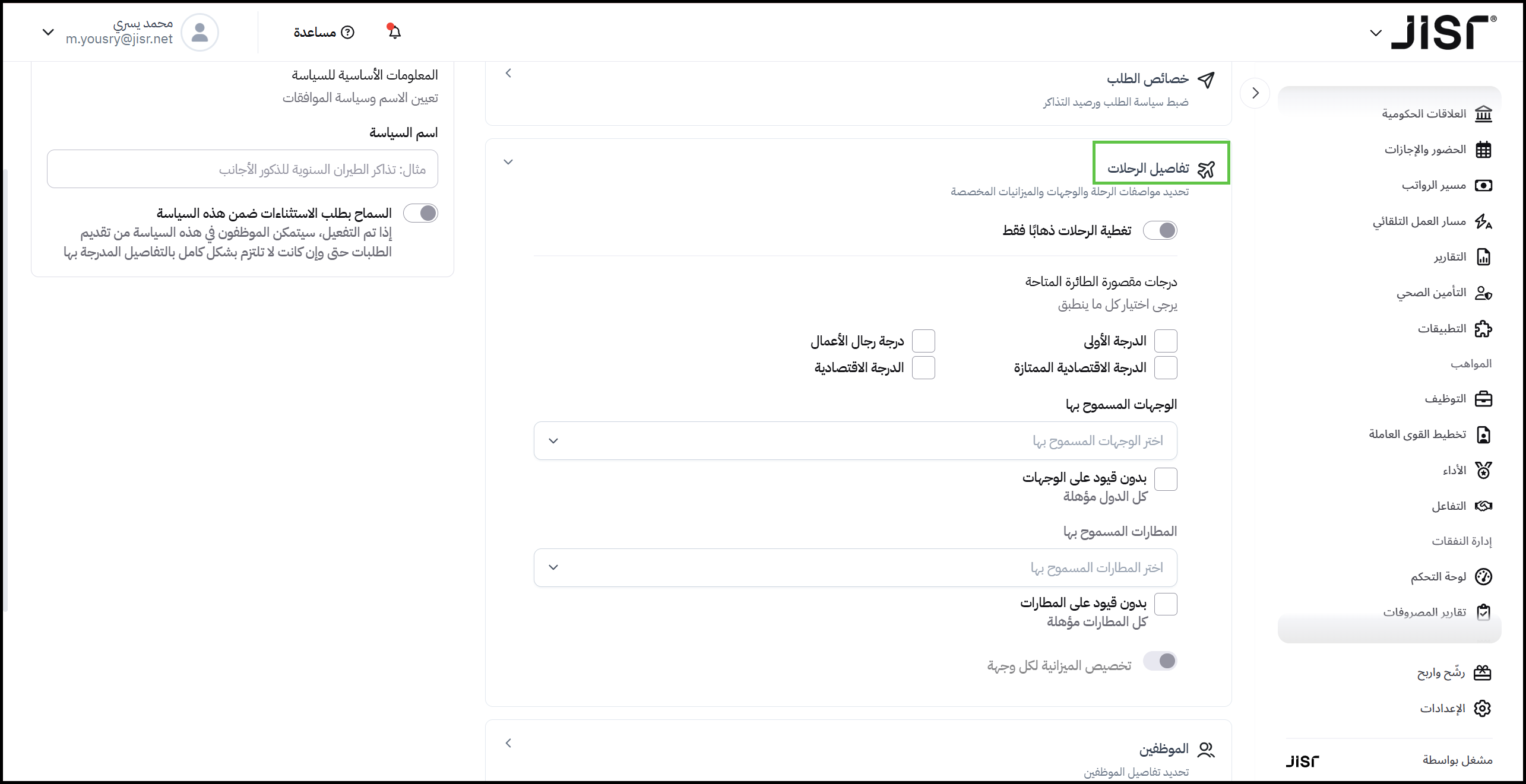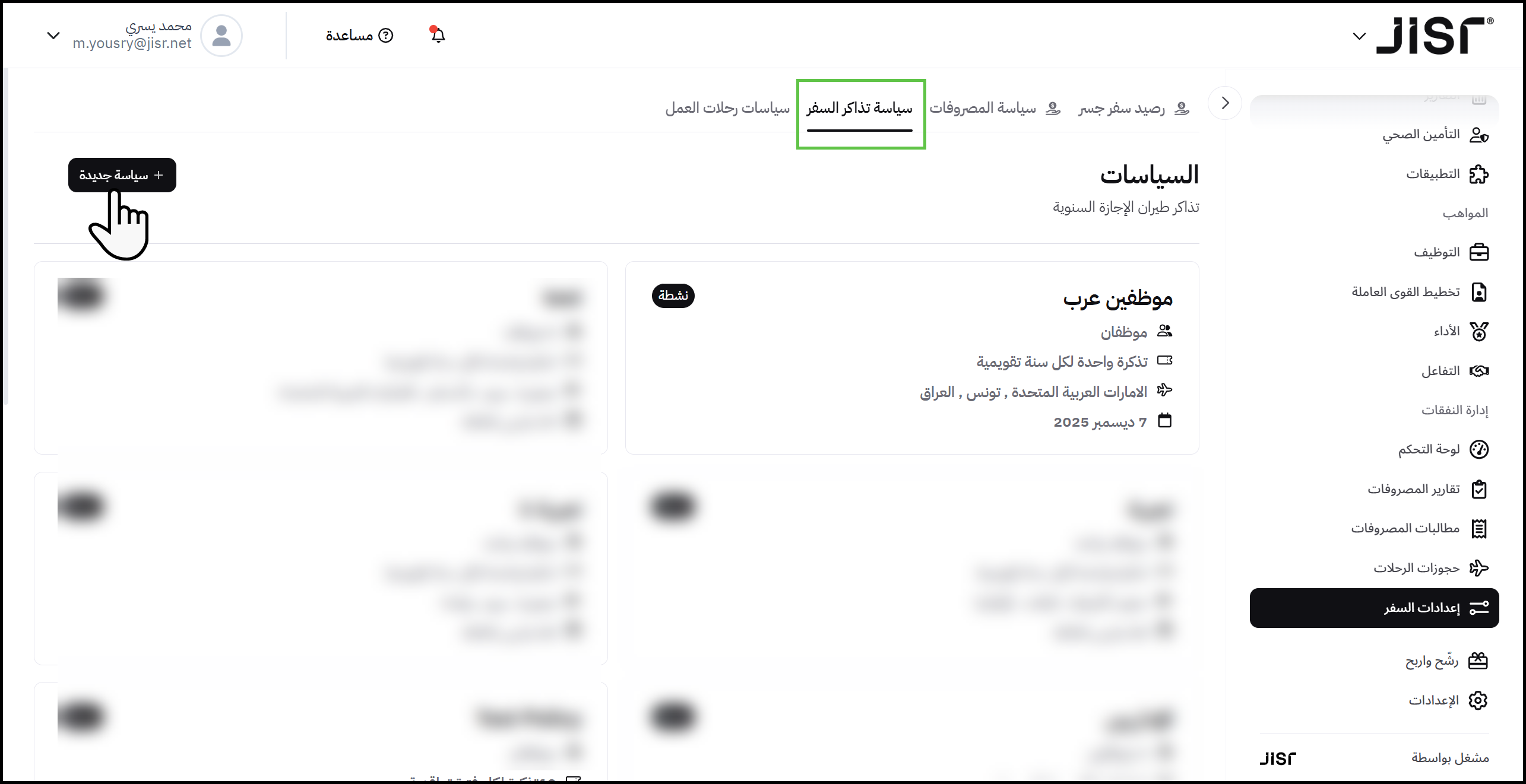 اختر من ضمن التبويبات "سياسة تذاكر السفر".