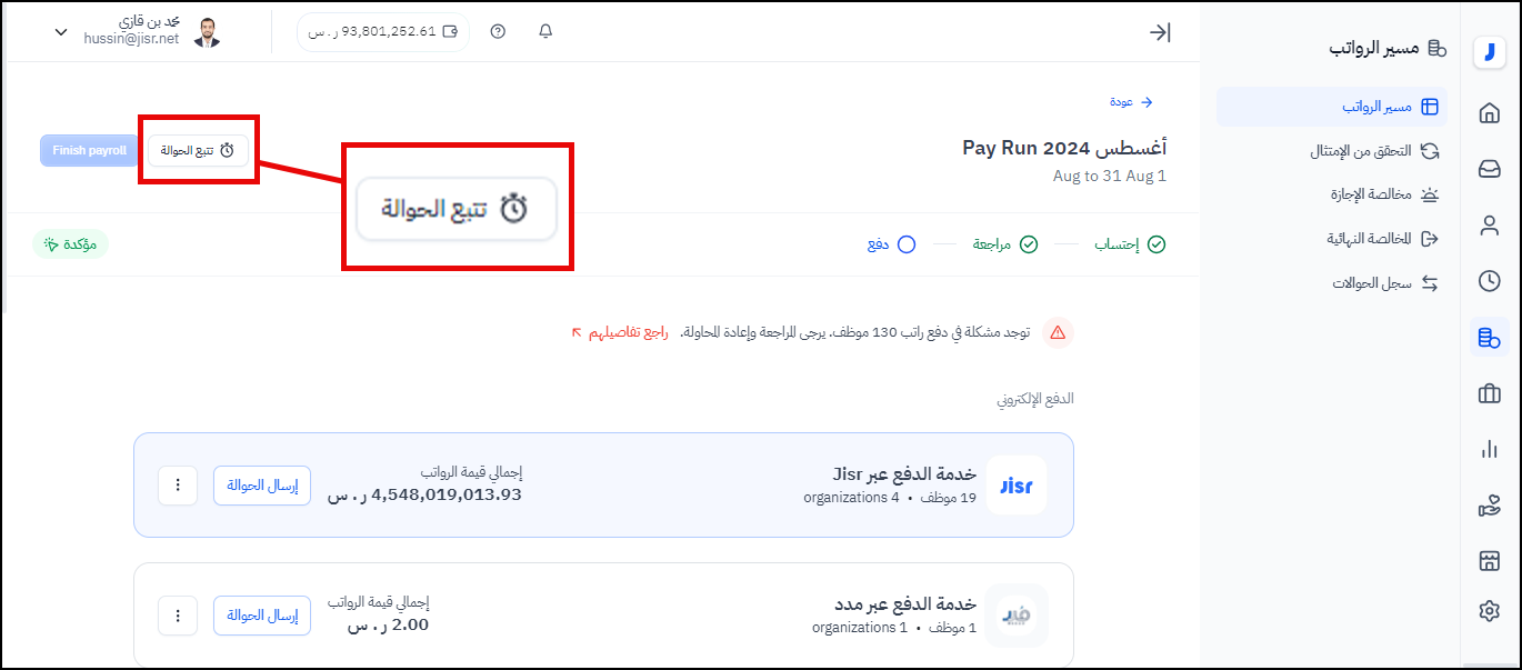 يمكن نظام جسر دايركت المستخدم في تتبع تحويل دفع الرواتب للموظفين ويتم ذلك بسهولة من خلال اتباع الخطوات التالية: