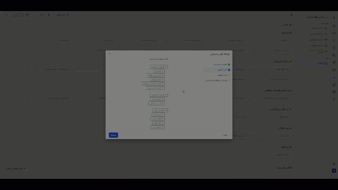 - خاصية إنشاء التقارير المخصصة متاحة فقط للموظفين المسندين على الدور الإفتراضي ( مشرف النظام ).