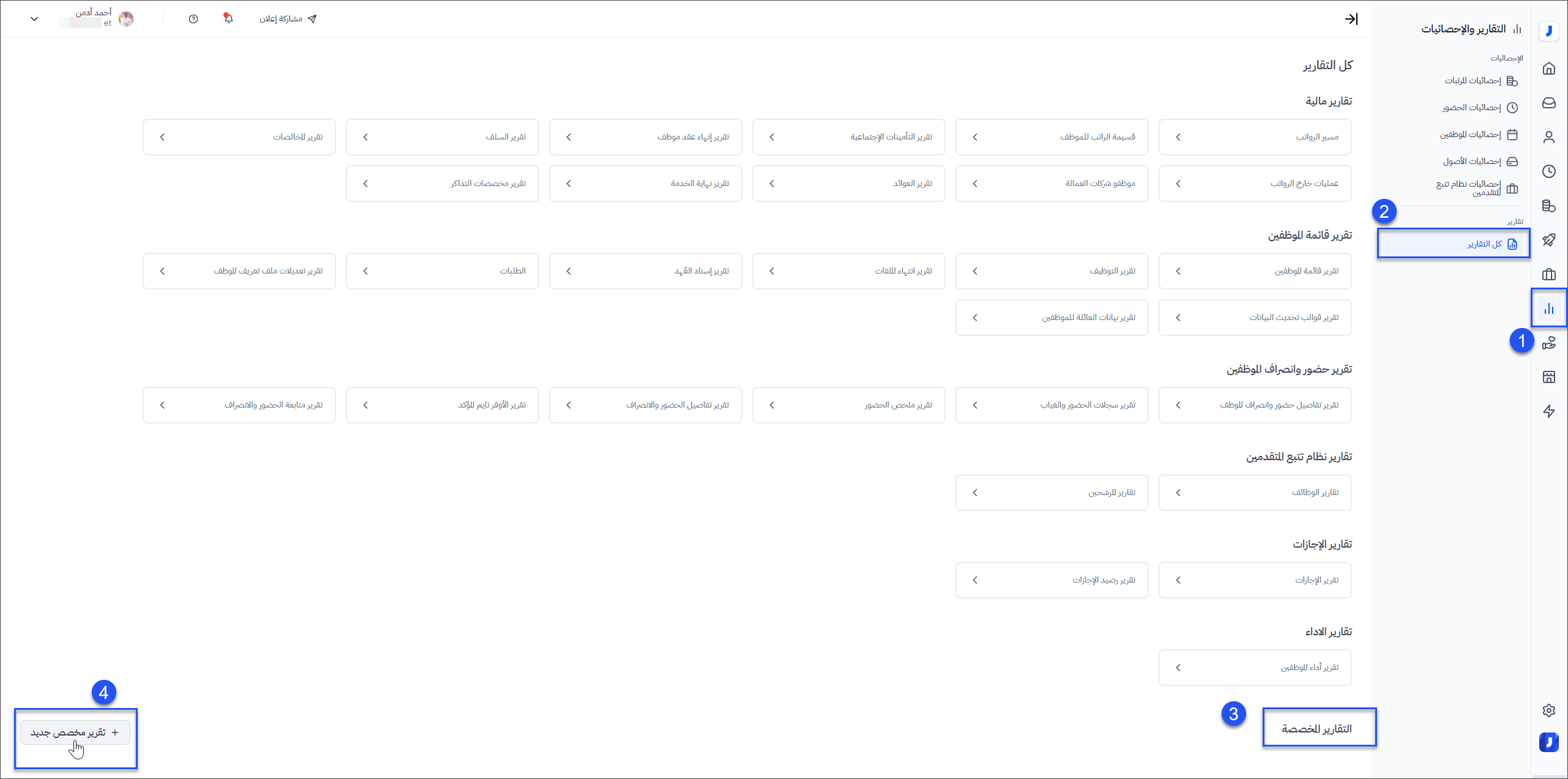 3- قم بالانتقال الى الجزء الخاص بالتقارير المخصصة