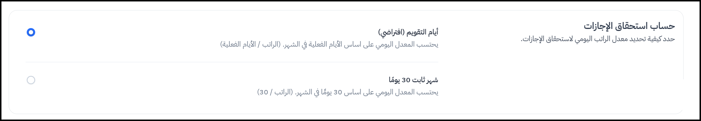 وكذلك يمكن اختيار حساب استحقاق الإجازات