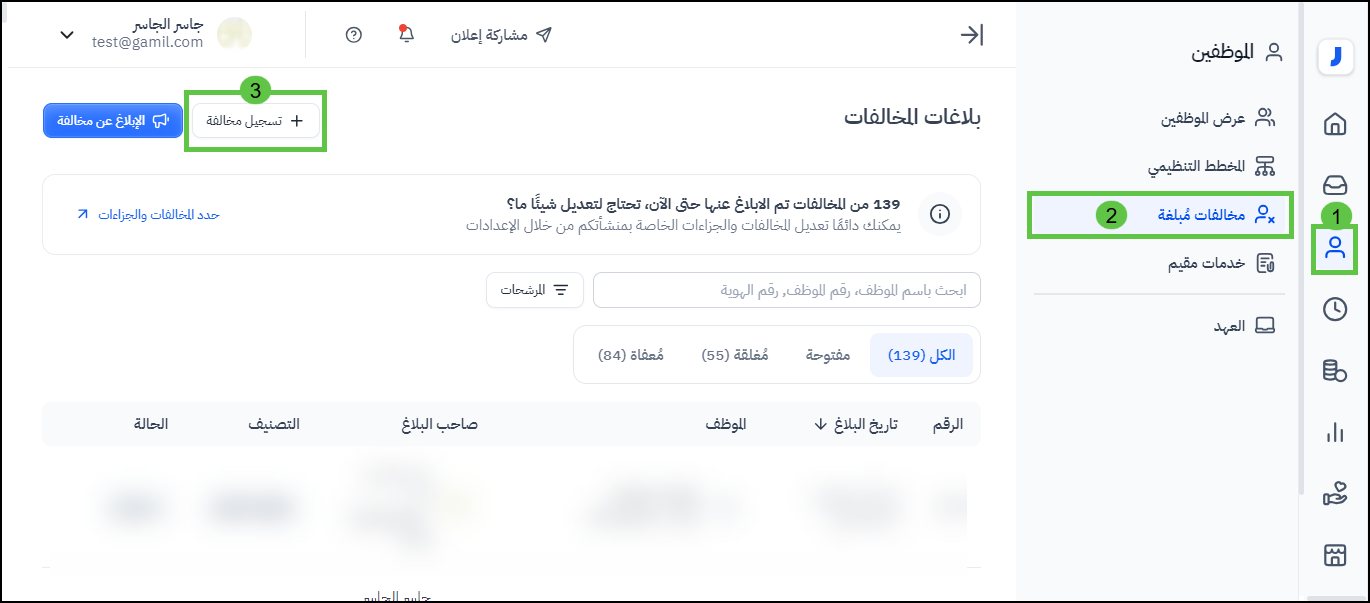 3- النقر على "تسجيل مخالفة"