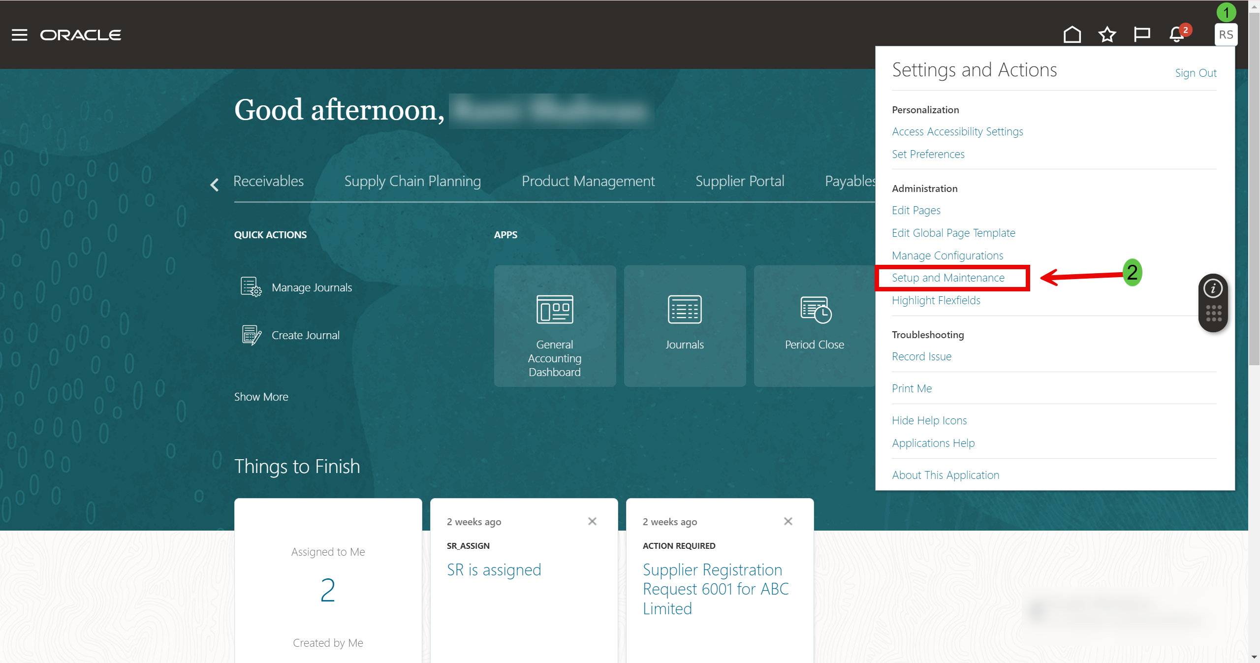 1- بالنقر على اسم الاكونت في أعلى يمين الشاشة ثم النقر على Setup and maintenance
