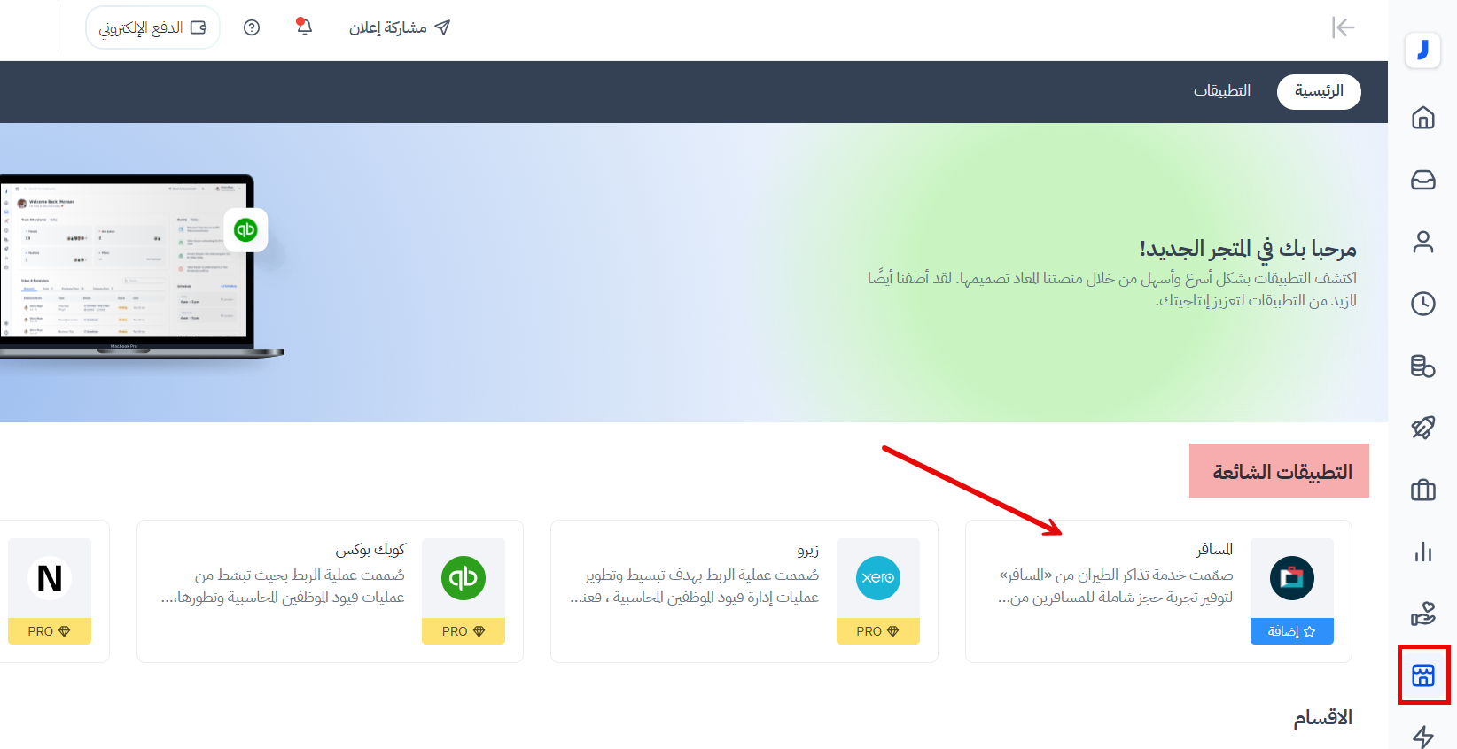 1. من صفحة "المتجر"، اضغط على أيقونة تطبيق "المسافر" ضمن قسم التطبيقات الشائعة.
