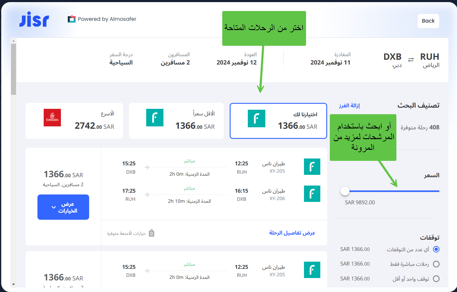 والآن، لنقم بحجز تذاكر الطيران مع المسافر من حسابك على جسر...