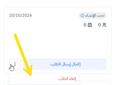 سيتم إدراج هذا الطلب غير المكتمل كطلب نشط بحالة 'تحت الإنشاء' ولن يمكن إنشاء طلبات جديدة حتى يتم تقديم هذا الطلب الغير مكتمل أو إلغاءه. وأيضا، يمكن إلغاء الطلبات في أي مرحلة من مراحل تقديم الطلب بسهولة.