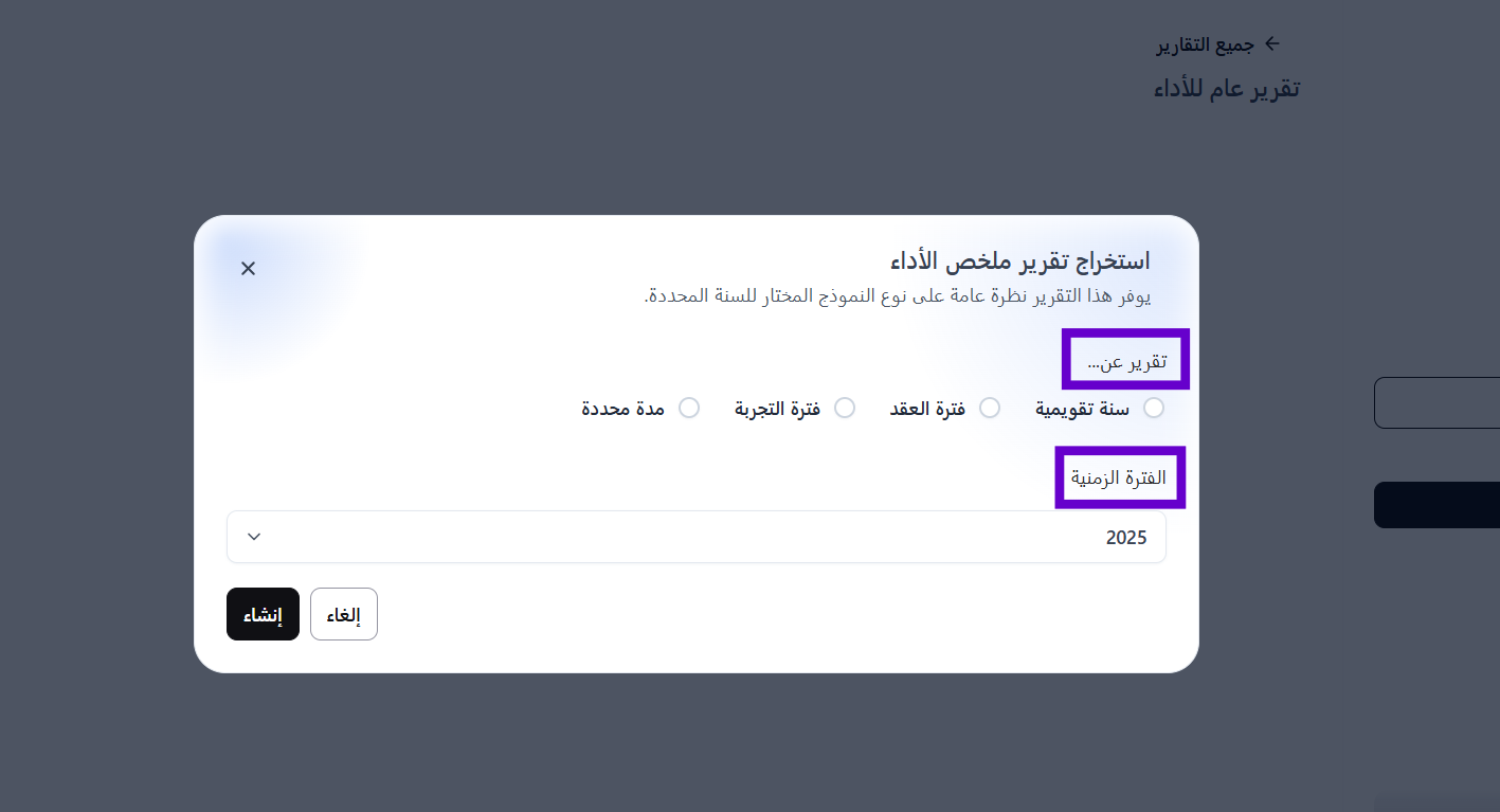 ستتمكن من تحديد البيانات المدرجة في التقرير عن طريق اختيار نوع النماذج والفترة الزمنية.