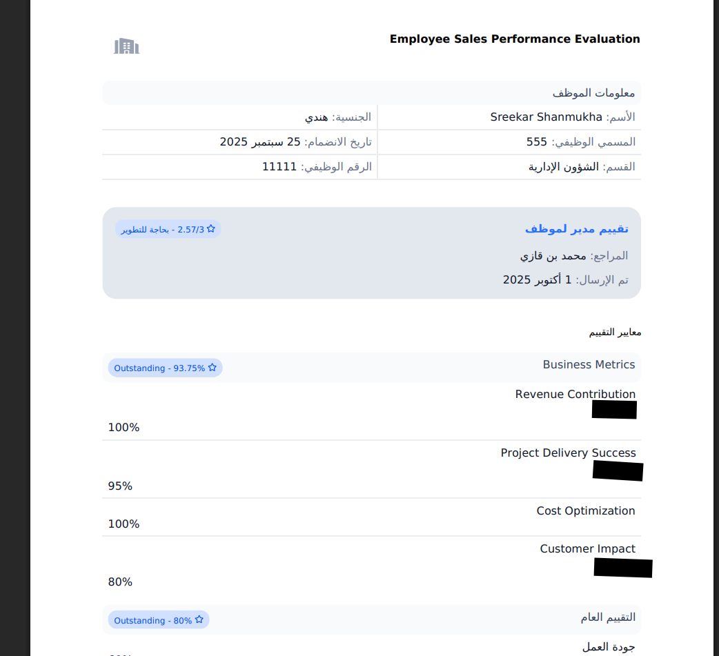 عند تحميل تقرير تقييم الموظف كملف PDF، يتم إضافة شعار Logo الشركة إلى الملف تلقائيًا.