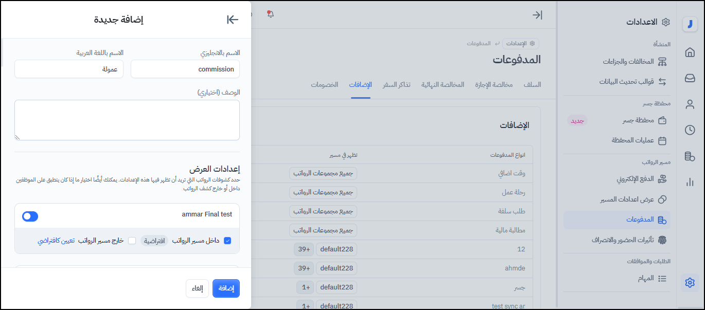 إعداد وإضافة أنواع المدفوعات والإضافات: