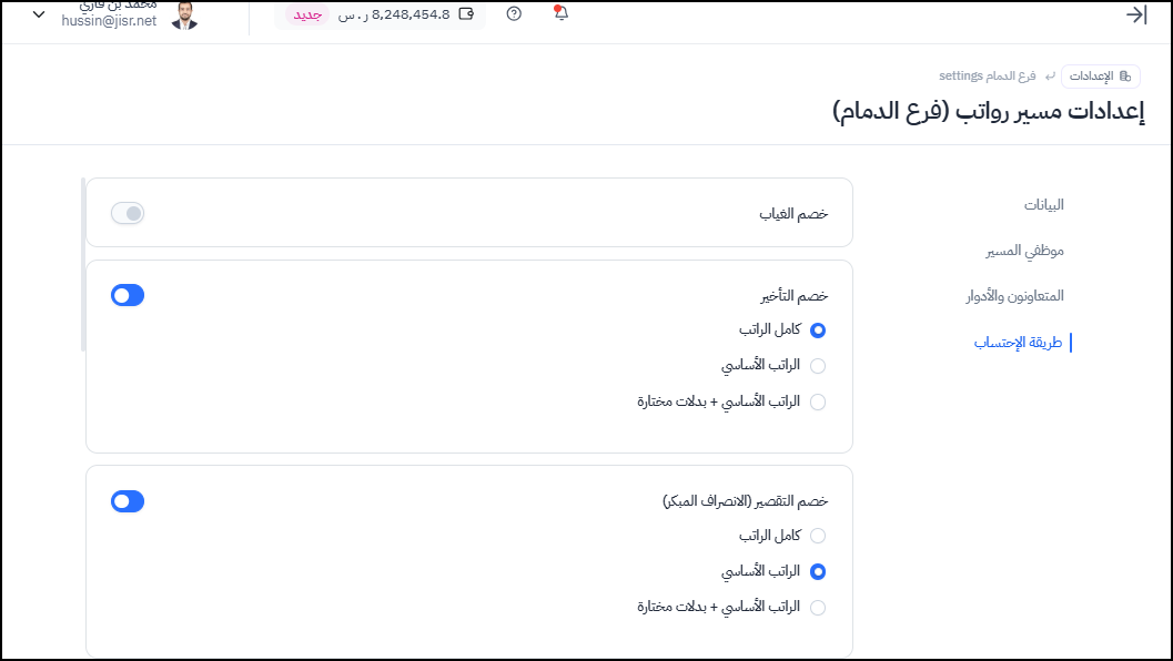 خطوات إعداد الإعدادات الخاصة بمسير الرواتب: