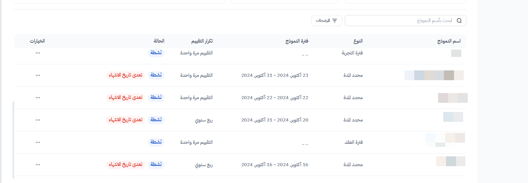 بعد انتهاء عملية الترحيل، ستجد جميع تقييماتك السابقة مضافة في صفحة "نماذج التقييم" داخل نظام الأداء بهذا الشكل.