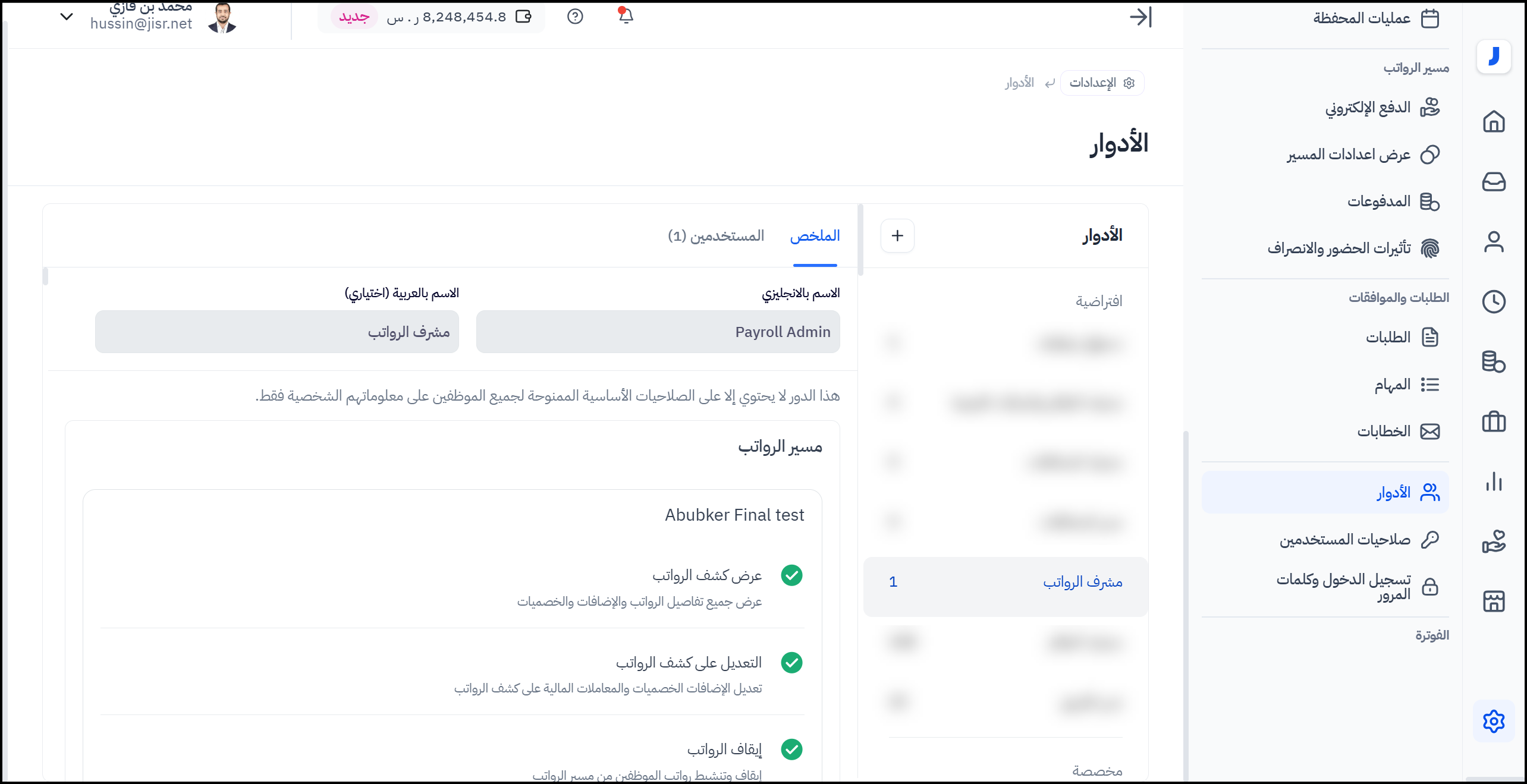 يوفر نظام جسر للمستخدم أدوار مخصصة لمسير الرواتب حيث ستساعده عند إسناد الأشخاص بهذه الأدوار وسيكون لهم صلاحيات لبعض المهام في مسير الرواتب.