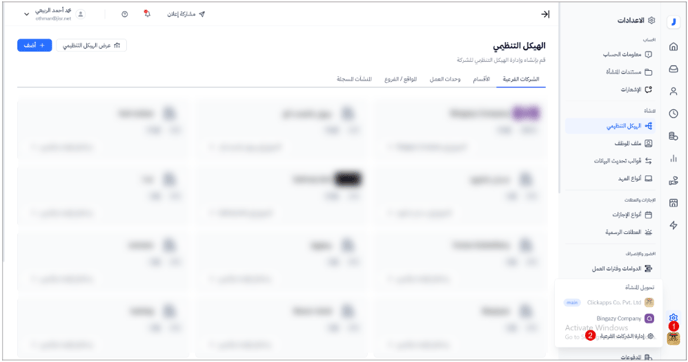 ملحوظة: يظهر خيار "إدارة الشركات الفرعية" للشركة الرئيسية فقط، حيث إنه يمكن إضافة شركات فرعية للشركة الرئيسية فقط.