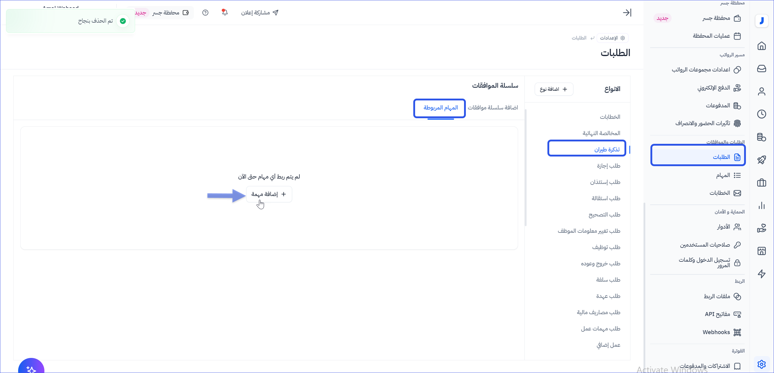 كيفية ربط الطلب بالمهمة في نظام جسر