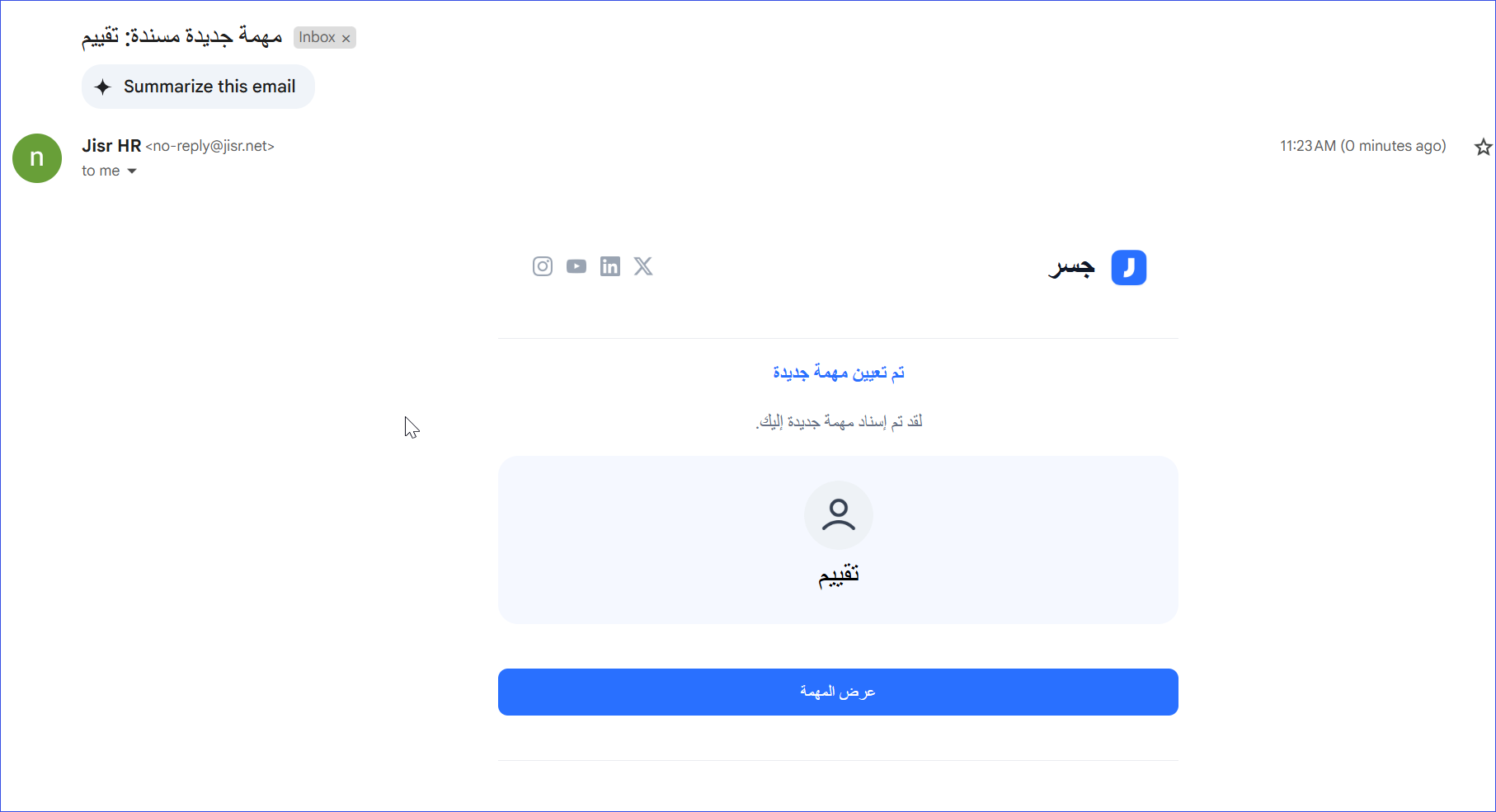 بمجرد الموافقة على طلب الموظف، سيتم إنشاء المهمة تلقائيًا وإرسال إشعار عبر البريد الإلكتروني إلى الشخص المكلف بها.
