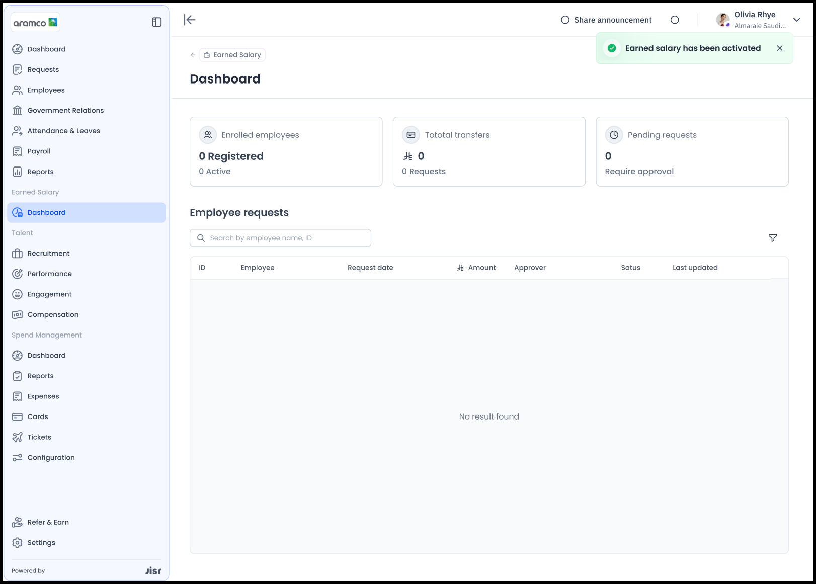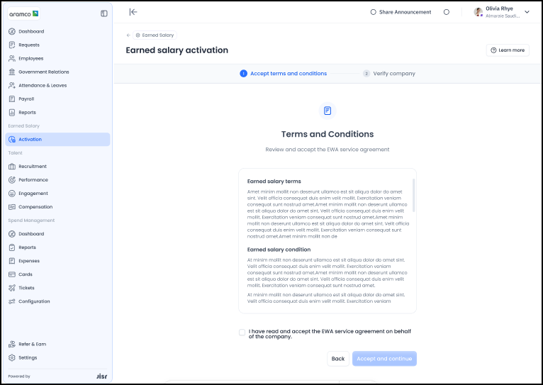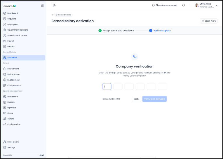 1- يقوم المستخدم بالنقر على زر "التفعيل" تحت أسفل Earned Salary.