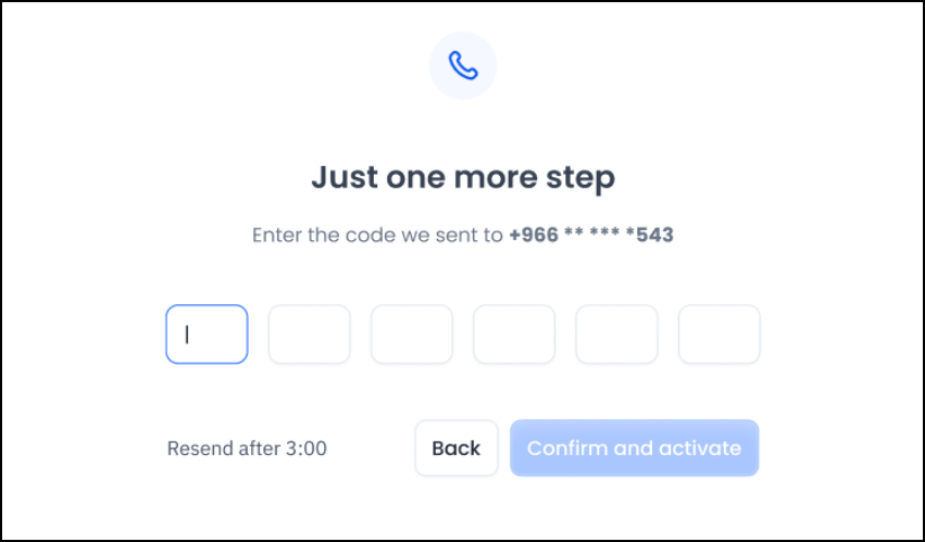 6- سيتم إرسال كود إلى رقم الجوال الخاص بك، بعد إدخال الكود سيتم تفعيل الخاصية للموظف.