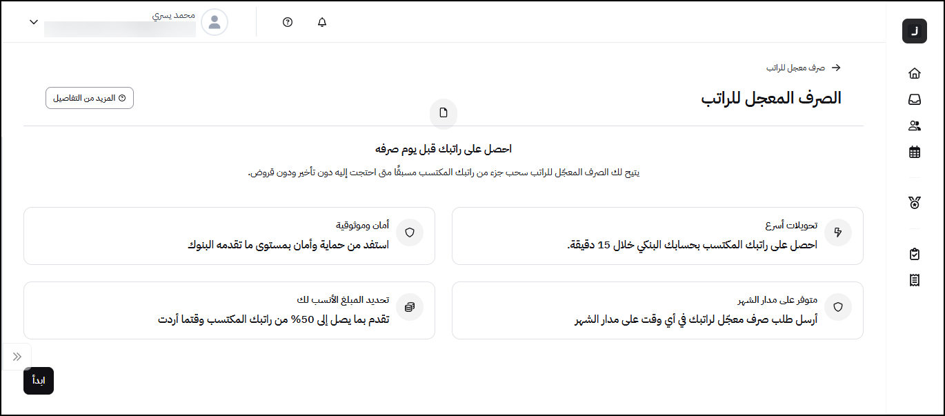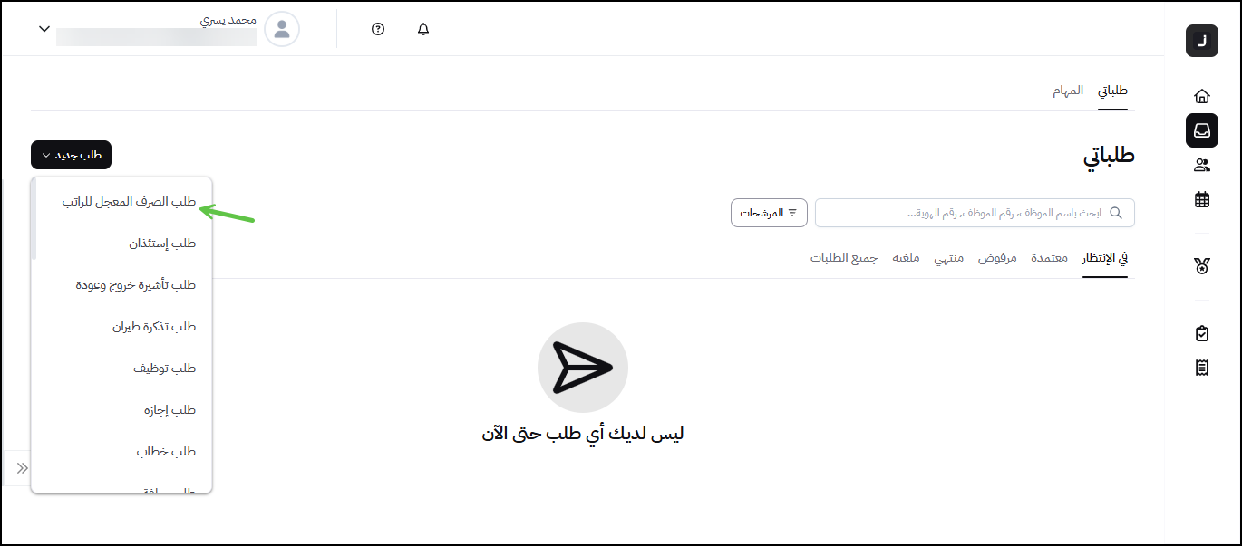 2- انقر على "طلب جديد" ثم اختر "طلب الصرف المعجل للراتب"