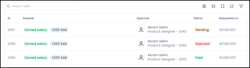 بعد قيام الموظف بإنشاء طلب للحصول على راتبه المكتسب نتيجة عمله، يقوم النظام بإرسال الطلب إلى المسؤولين المتواجدين في سلسلة الموافقات الخاصة بطلبات الوصول إلى الراتب المكتسب (كما في جميع الطلبات في النظام)